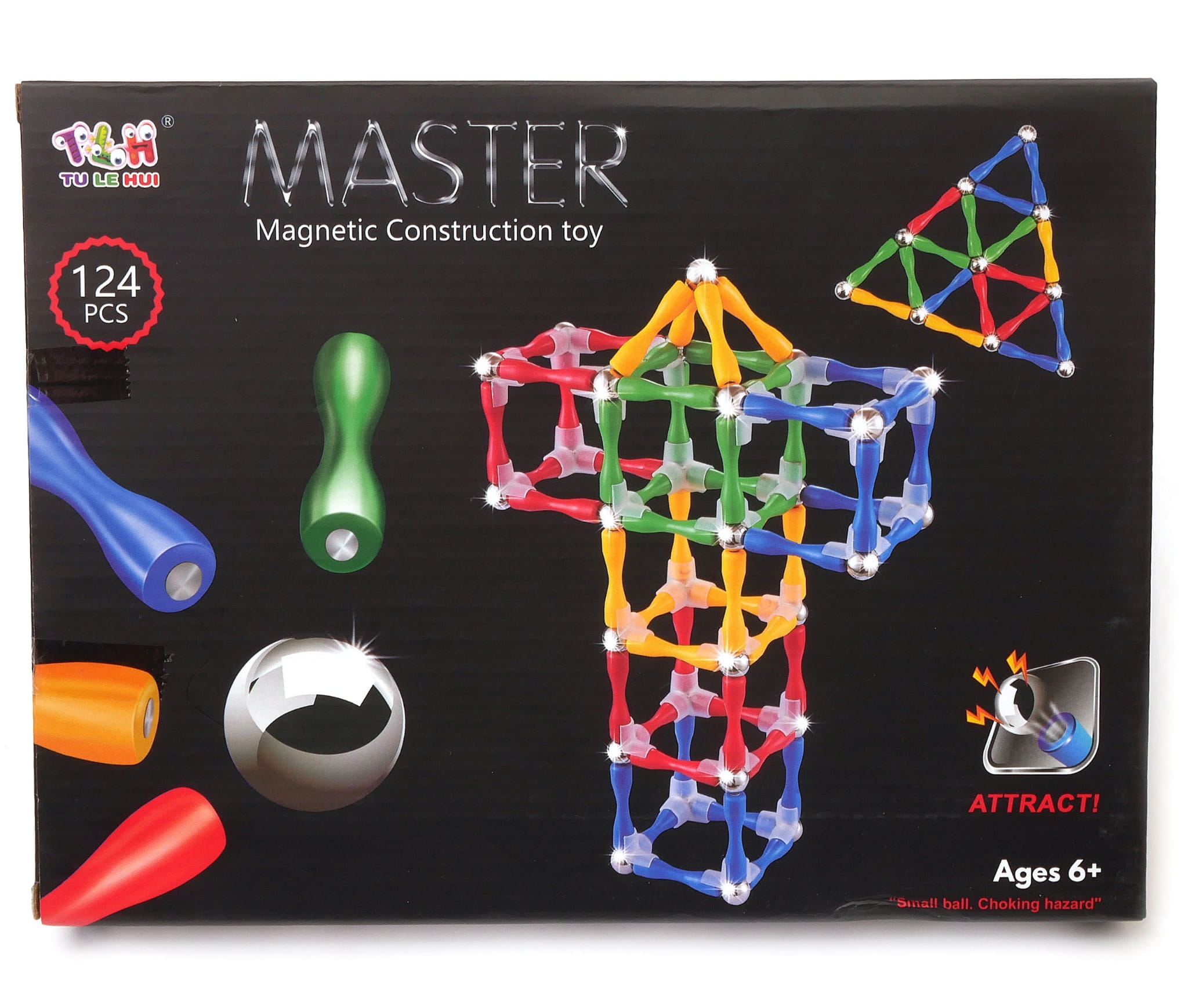 Zestaw klocków magnetycznych. Składanie odbywa się poprzez łączenie patyczków z magnesami na końcu poprzez metalowe kulki. Wspaniała zabawa dla dzieci. W skład zestawu wchodzi 124 elementy.