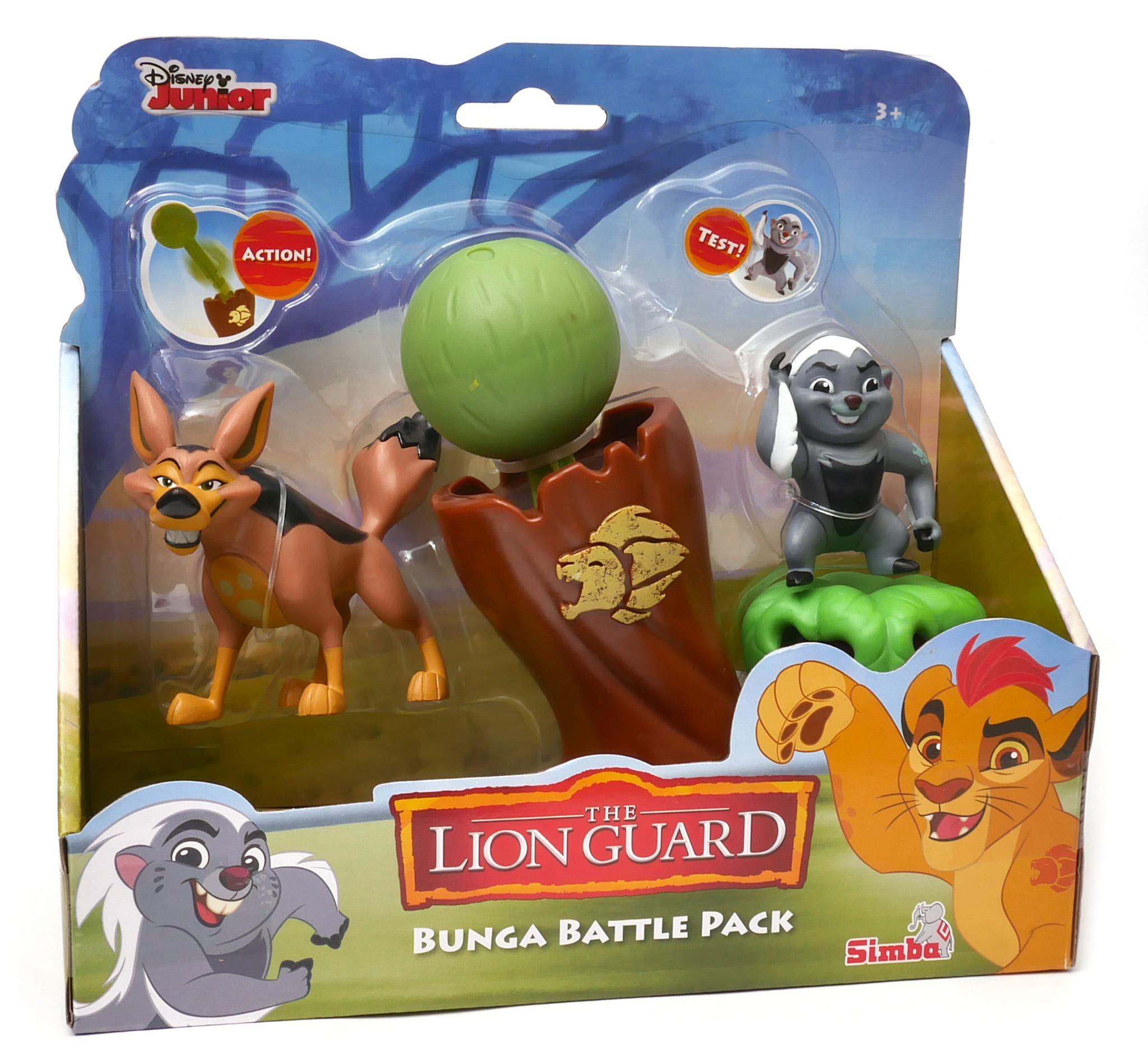 Zestaw Walka ratla Bunga z kojotem składa się z dwóch figurek firmy Simba. Figurki zaprojektowane zostały na wzór bohaterów amerykańskiego serialu animowanego dla dzieci, produkcji Disney Junior "Lwia straż" (ang. The Lion Guard). Lwia straż jest serialową kontynuacją popularnego filmu animowanego Disney'a z 1994 roku pod tytułem "Król Lew" (ang. The Lion King).