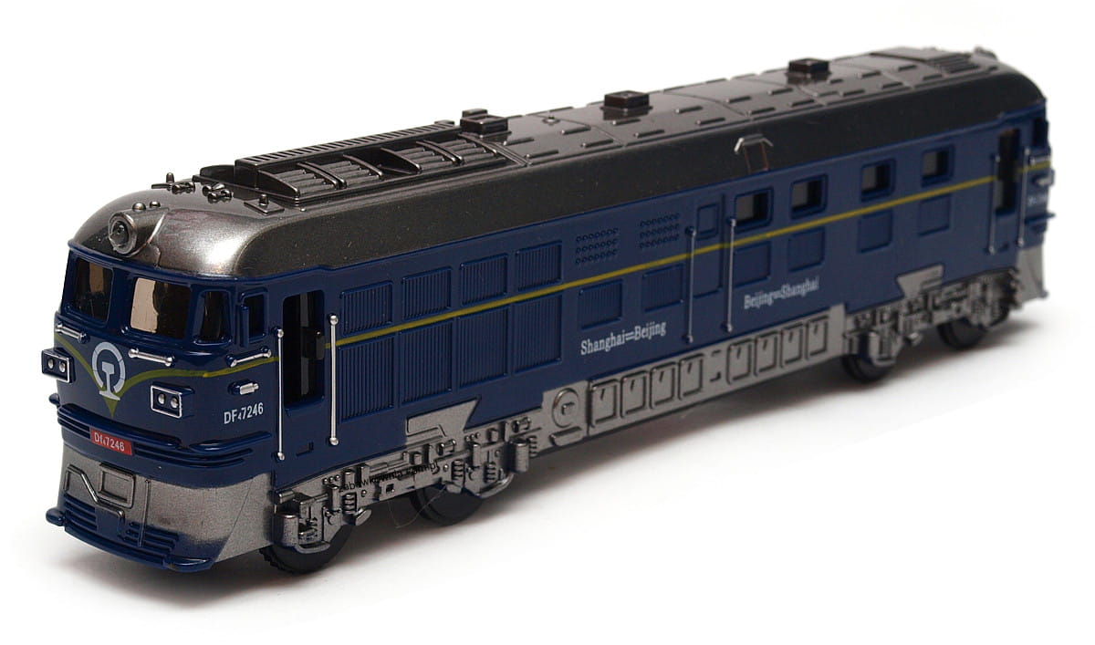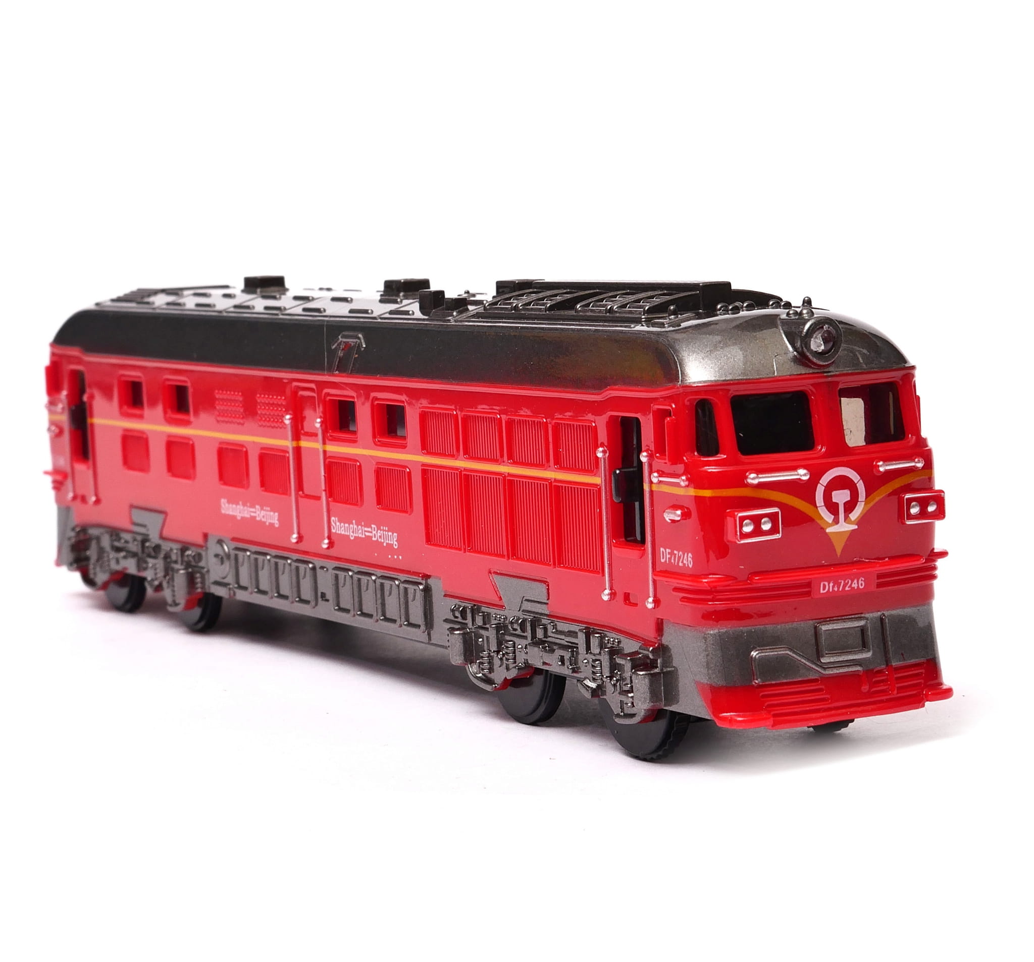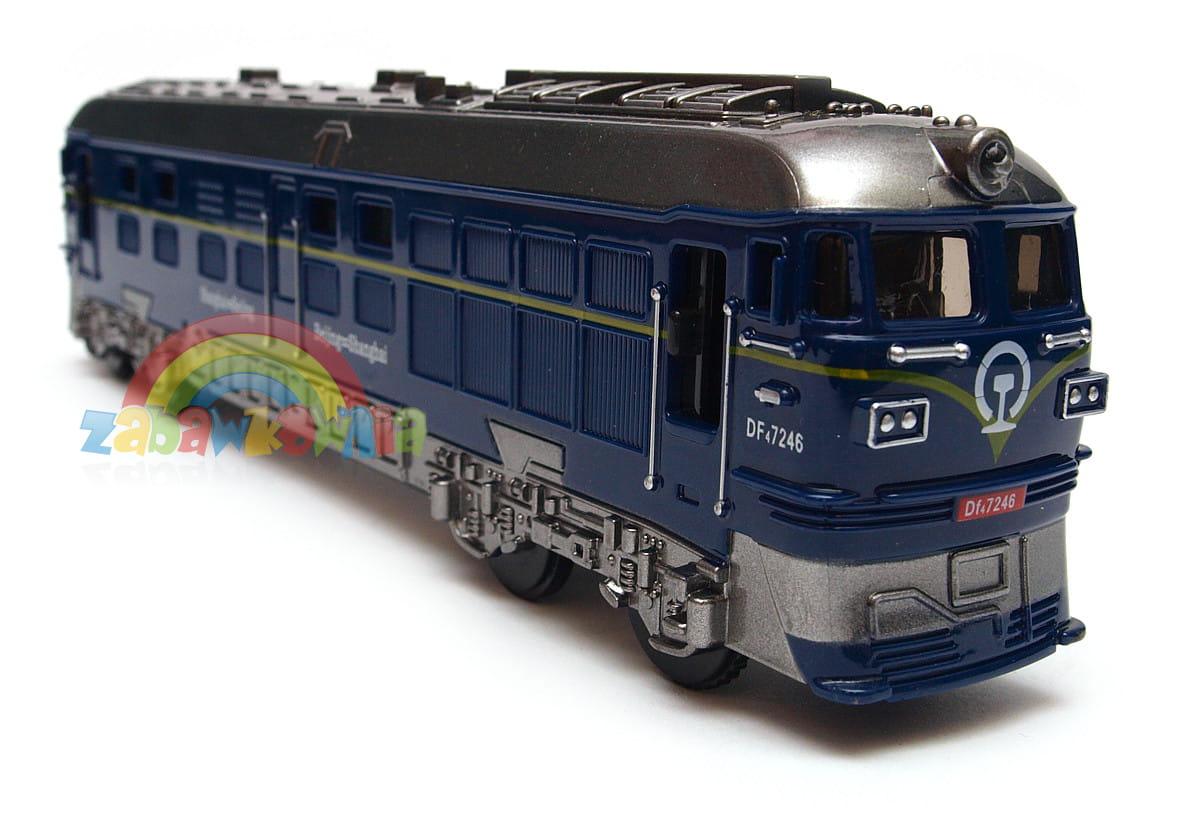 Model w sam raz dla małych miłośników kolei. Taki wagonik świetnie mieści się w dłoni umożliwiając swobodną zabawę małym dzieciom. Ciuchcia wyposażona jest w napęd z kołem zamachowy, a także otwierane drzwi. Ponadto elektrowóz może wydawać dźwięki pociągu i świecić światłem z reflektora na jego dachu.