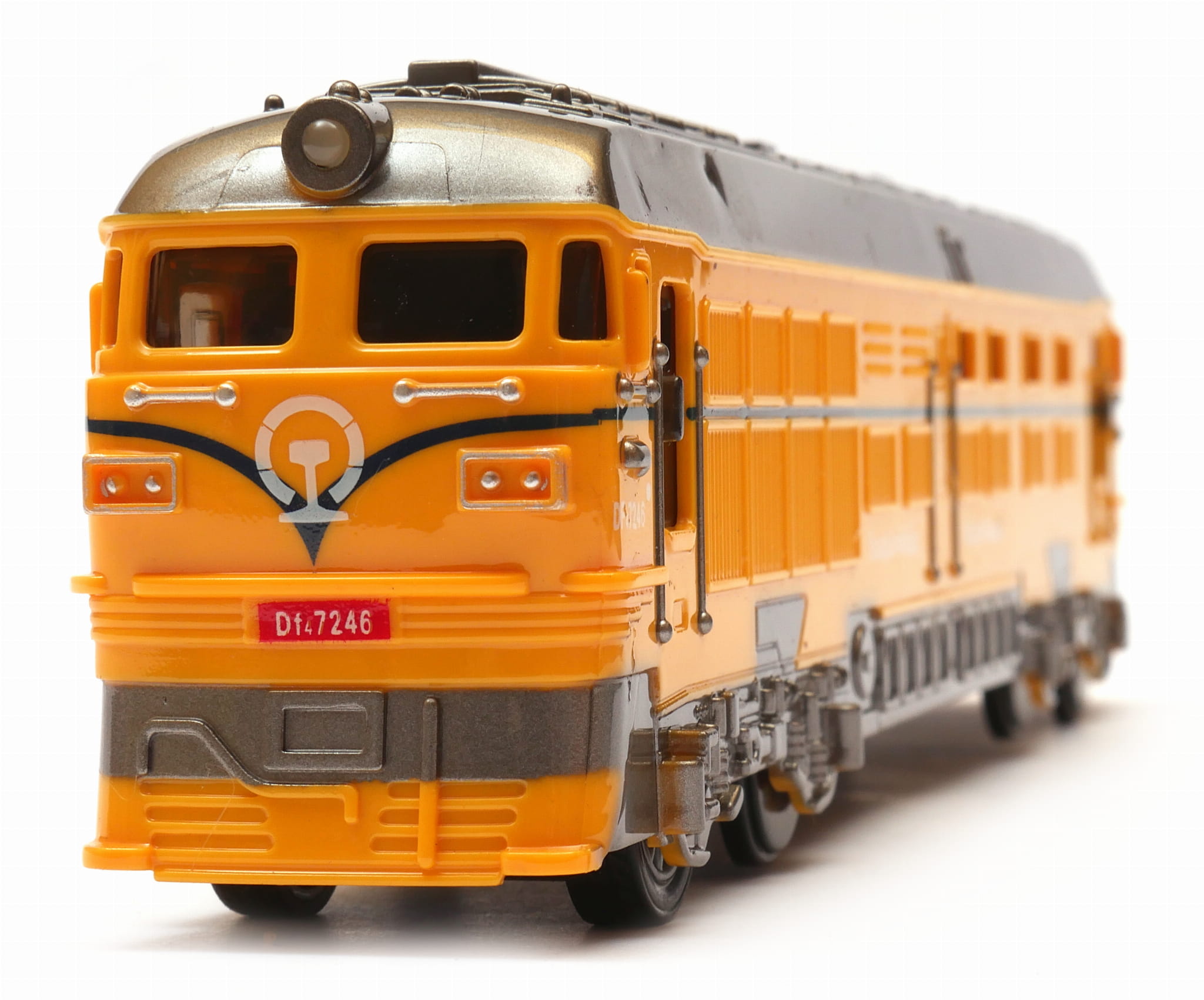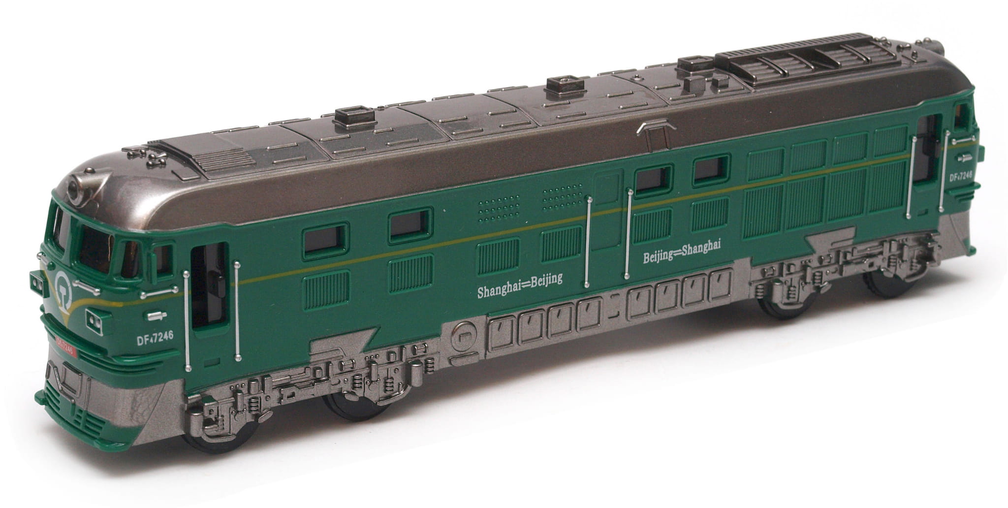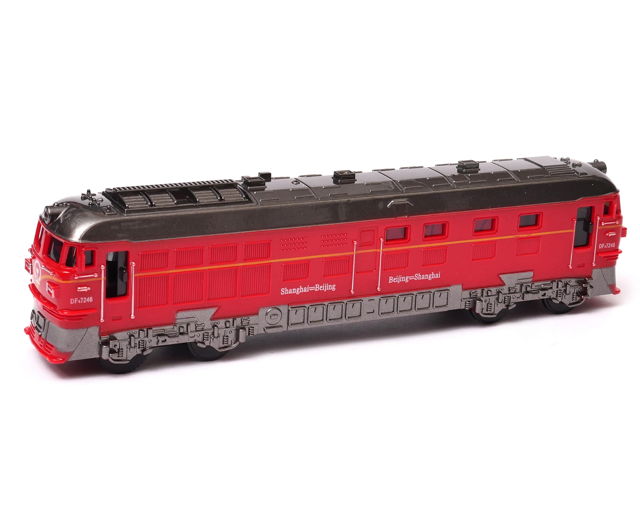 Model w sam raz dla małych miłośników kolei. Taki wagonik świetnie mieści się w dłoni umożliwiając swobodną zabawę małym dzieciom. Ciuchcia wyposażona jest w napęd z kołem zamachowy, a także otwierane drzwi. Ponadto elektrowóz może wydawać dźwięki pociągu i świecić światłem z reflektora na jego dachu.