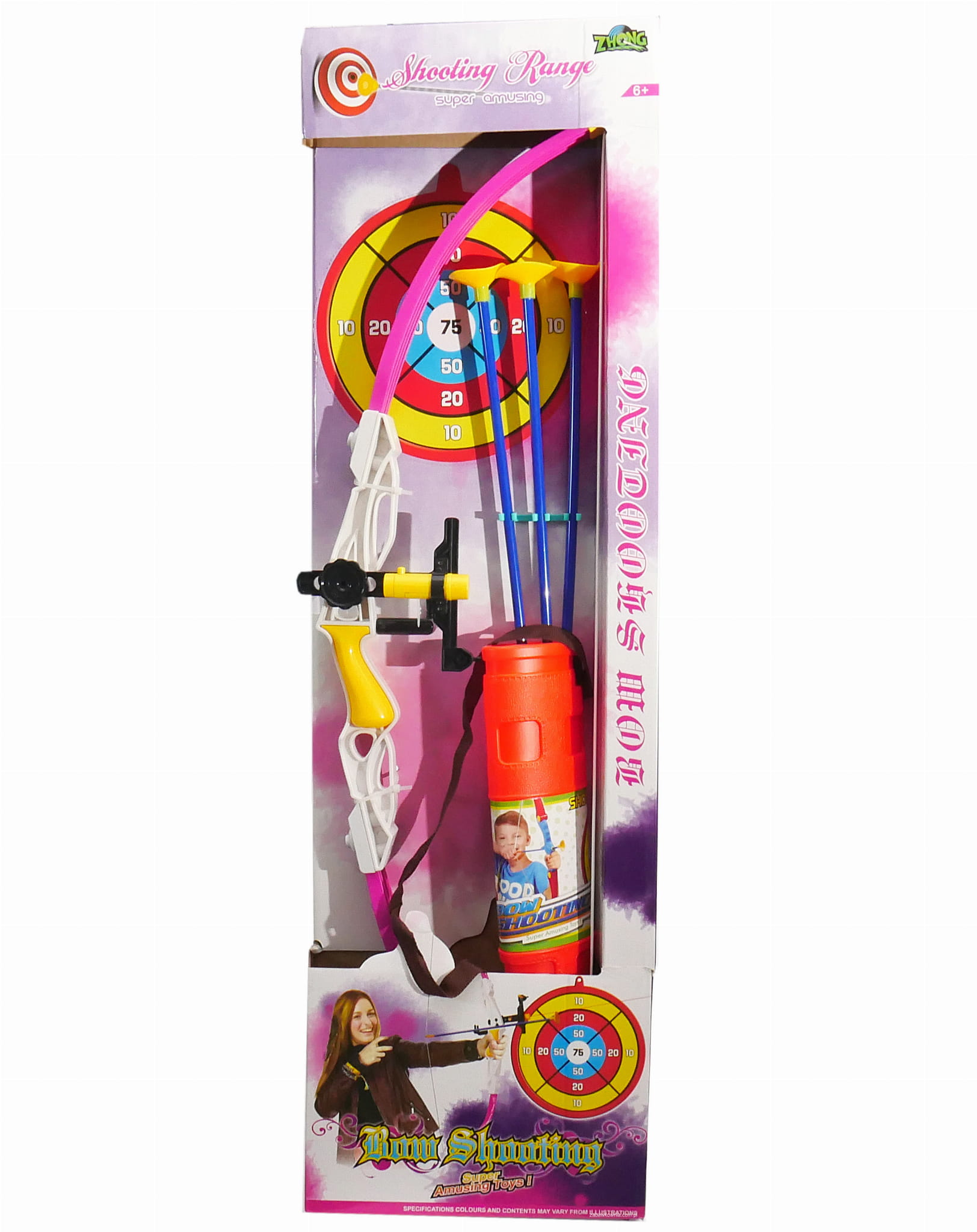 Łuk 75cm na strzały z przyssawkami z laserem i kołczanem - dziwczynki