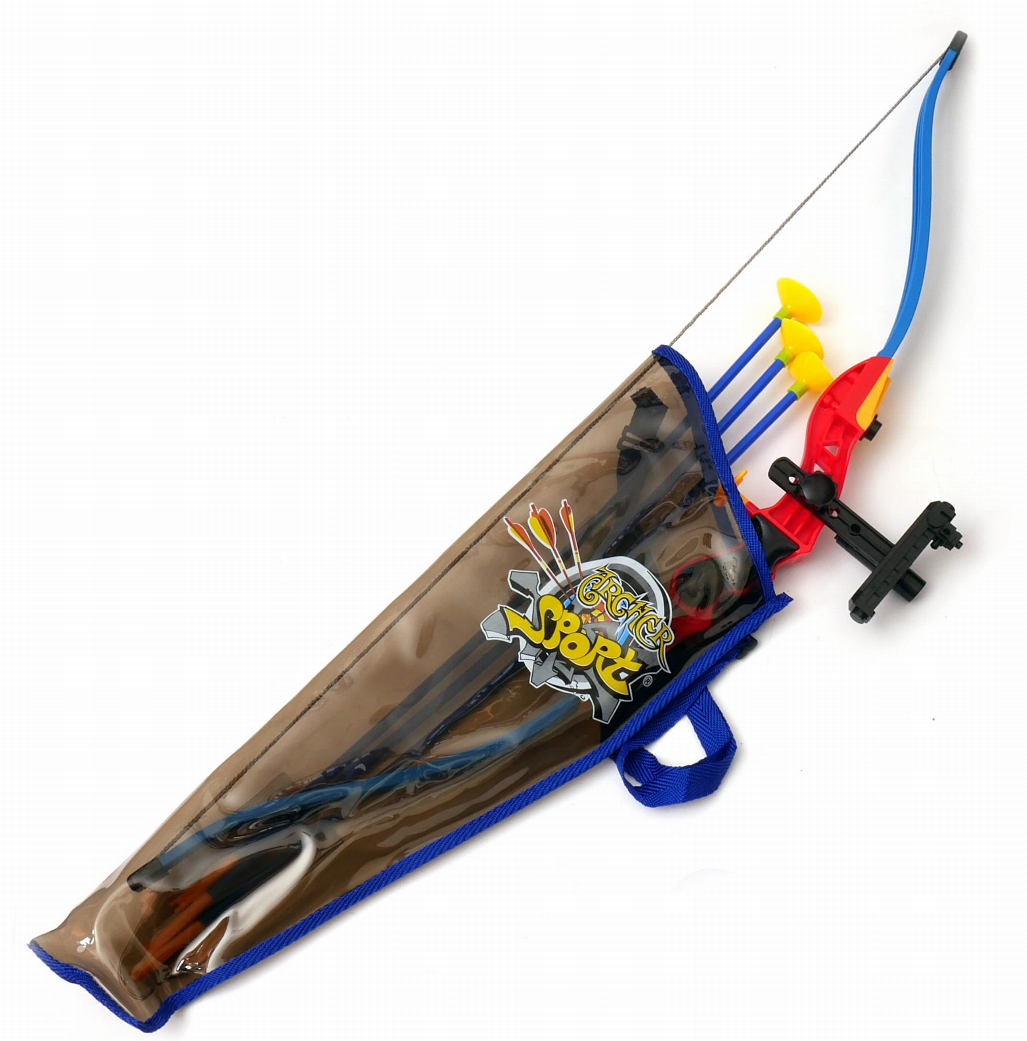 Duży łuk na strzały z przyssawkami. Taki zestaw to nie lada gratka dla małych miłośników łucznictwa.Groty strzał wykonane są z miękkiej gumy w kształcie przyssawek, które mają na celu zapewnienie bezpiecznej zabawy.