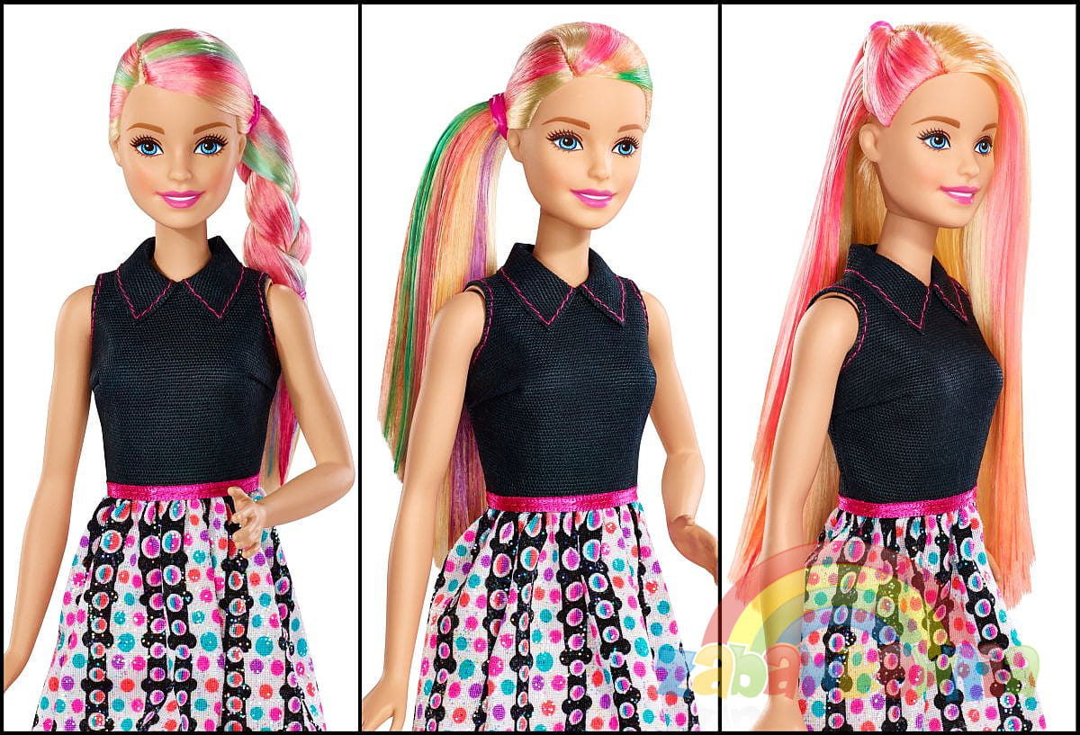 Małe dziewczynki kochają układanie fryzur, czesanie lalek i układanie loków. Przedstawiona lalka Barbie umożliwi Ci to wszystko, a nawet więcej. Tej Barbie® można układać naprawdę wyjątkowe fryzury, bo bardzo kolorowe! Wybierz arkusz z kolorem farbki i dodaj do niej wody, wymieszaj, a dołączoną szpatułką-pędzelkiem nanoś na kosmyki włosów Barbie®. Do lalki dołączonych jest aż 36 zasobników z farbkami do włosów dając możliwość wyboru sześciu kolorów różowy, fioletowy, żółty, niebieski, truskawkowy blond i brązowy. Ale to nie wszystko, mieszając kolory możesz stworzyć nowe wyjątkowe barwy. W zestawie znajdziesz gumki do włosów, a to z kolei umożliwi z kolorowych pasemek tworzyć pomysłowe warkocze, kitki i koki. Farbki są zmywalne i fryzurę można spłukać by głowa Barbie® była ponownie gotowa na Twoje stylizacje.