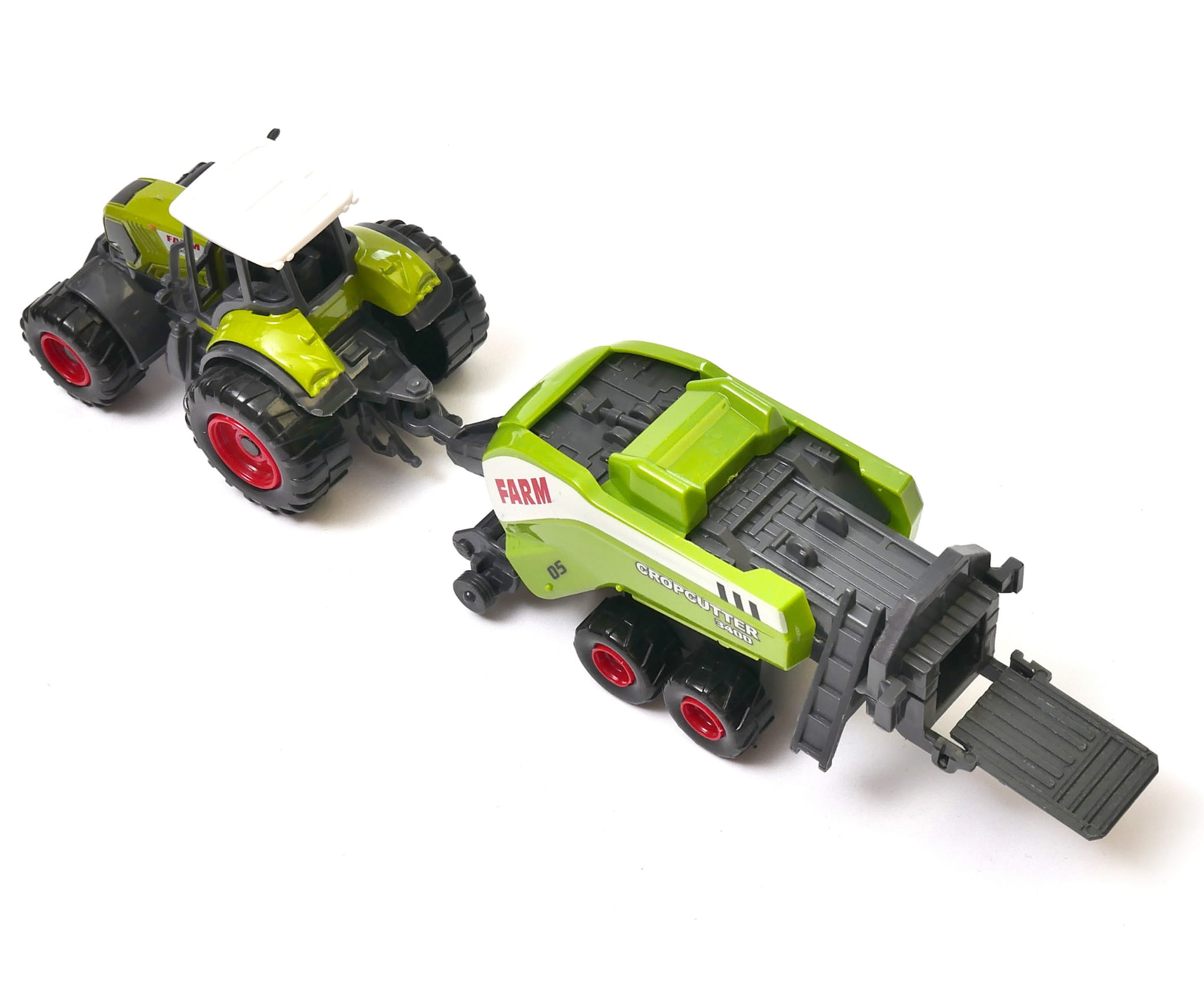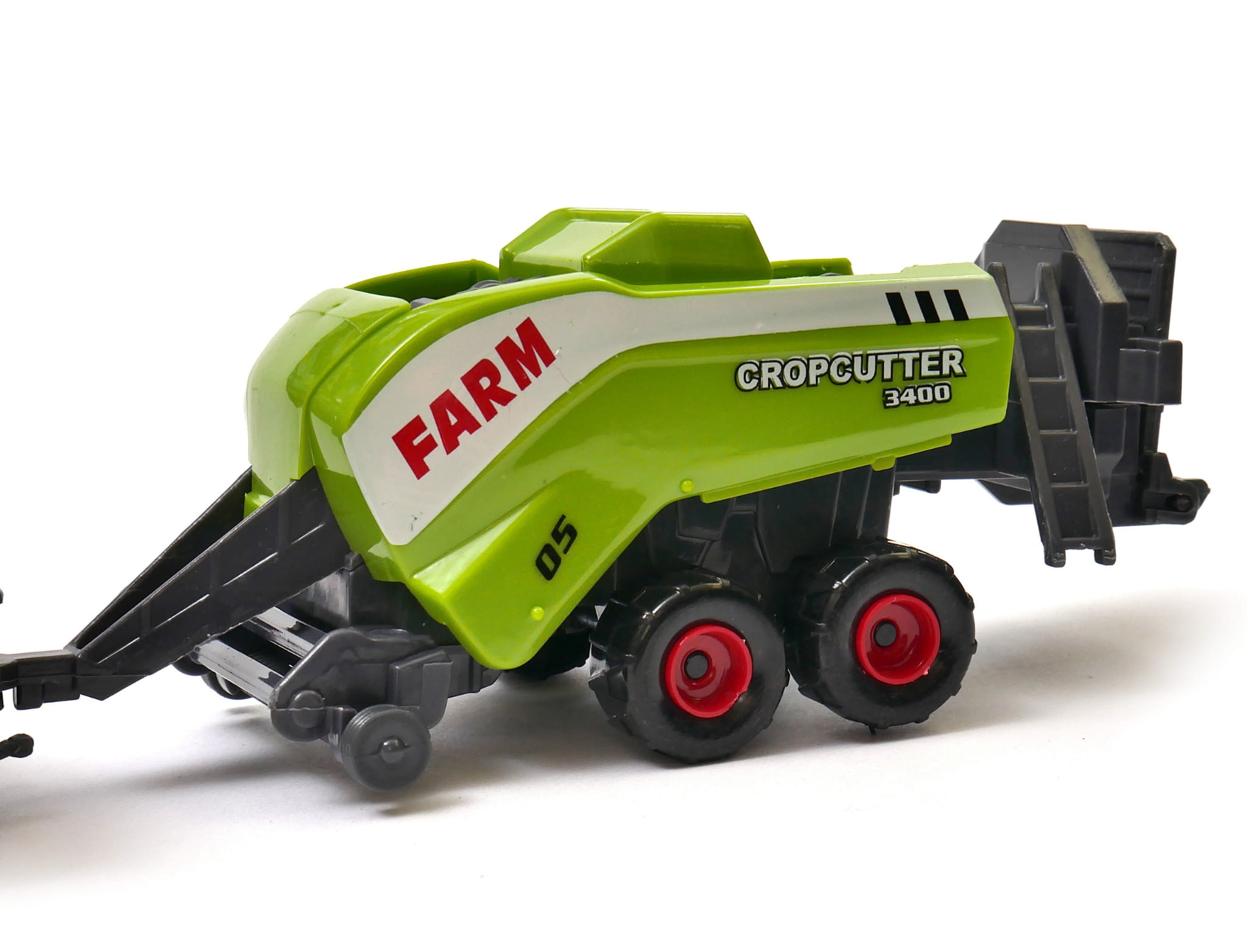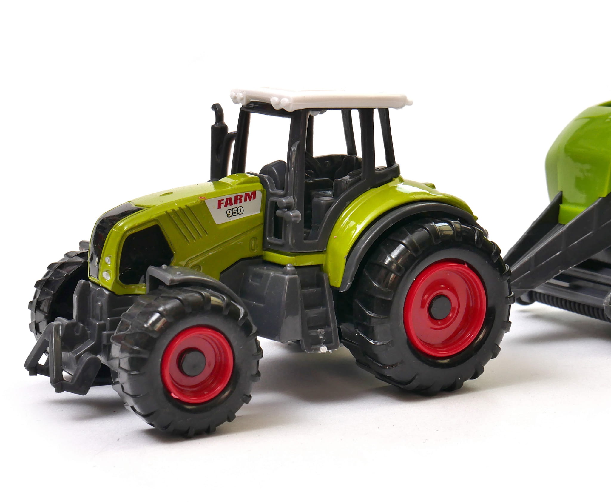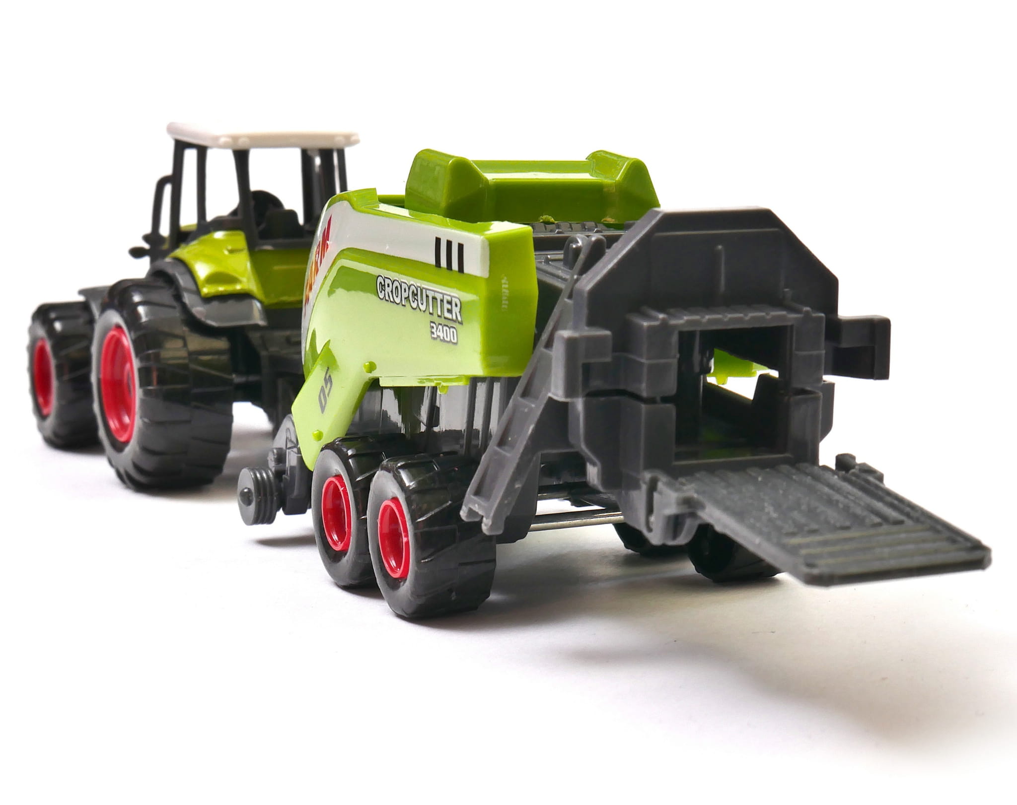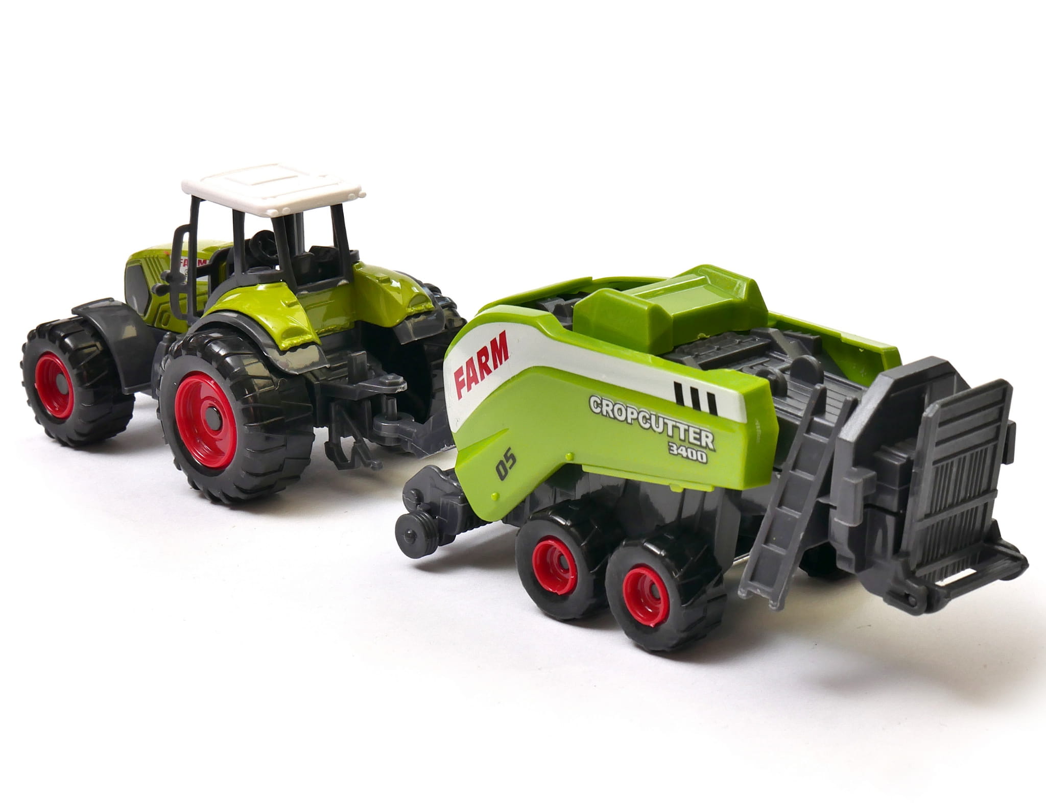 Ogromny traktor rolniczy z zestawem prasowania słomy. Chłopcy uwielbiają przyglądać się pracy potężnej maszyny, a ta zabawka sprawi, że poczują się wyjątkowymi posiadaczami jednej z nich. Przyczepa odczepiana jest od ciągnika i możliwa jest zabawa zarówno zestawem jak i samym traktorem.