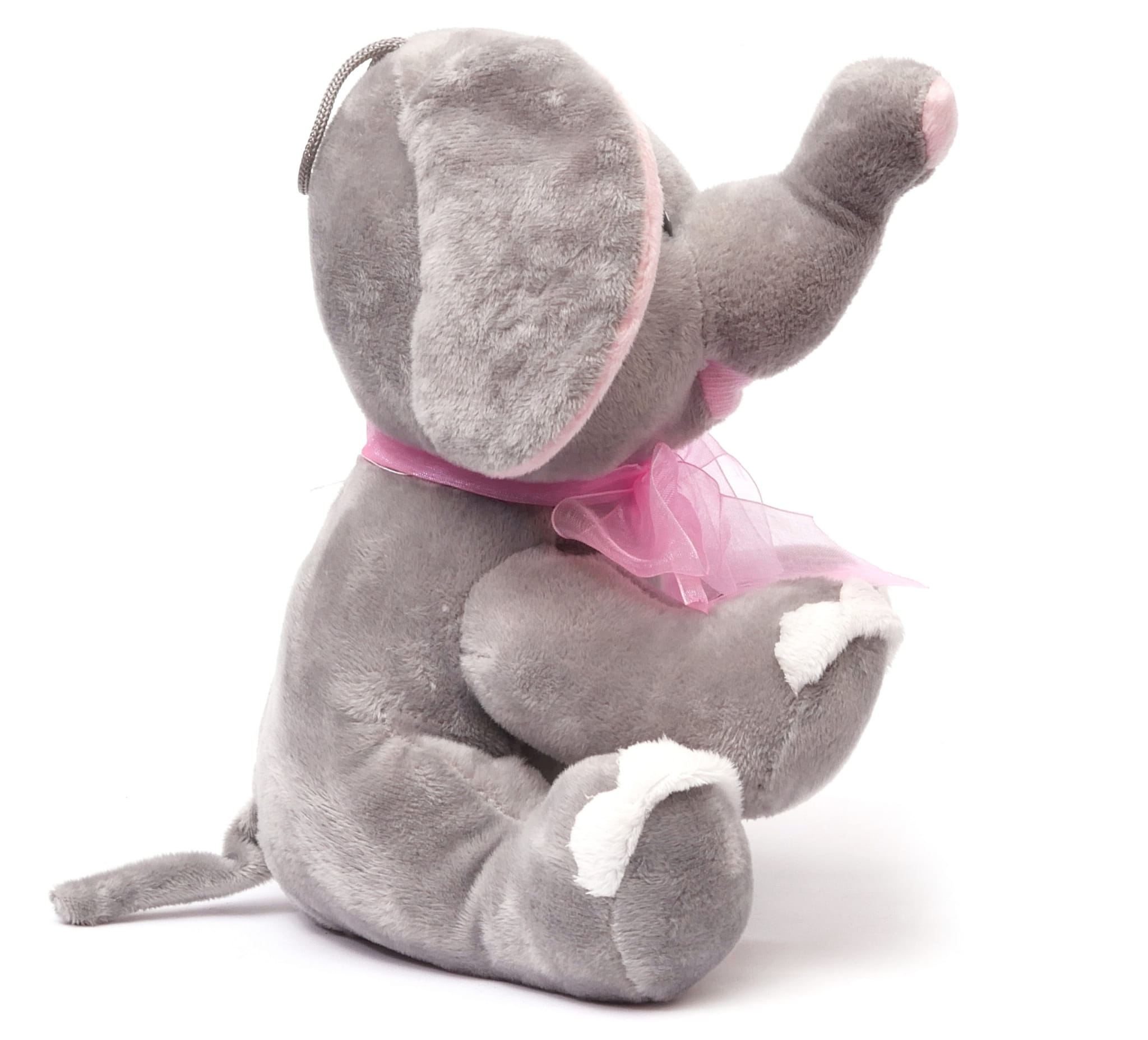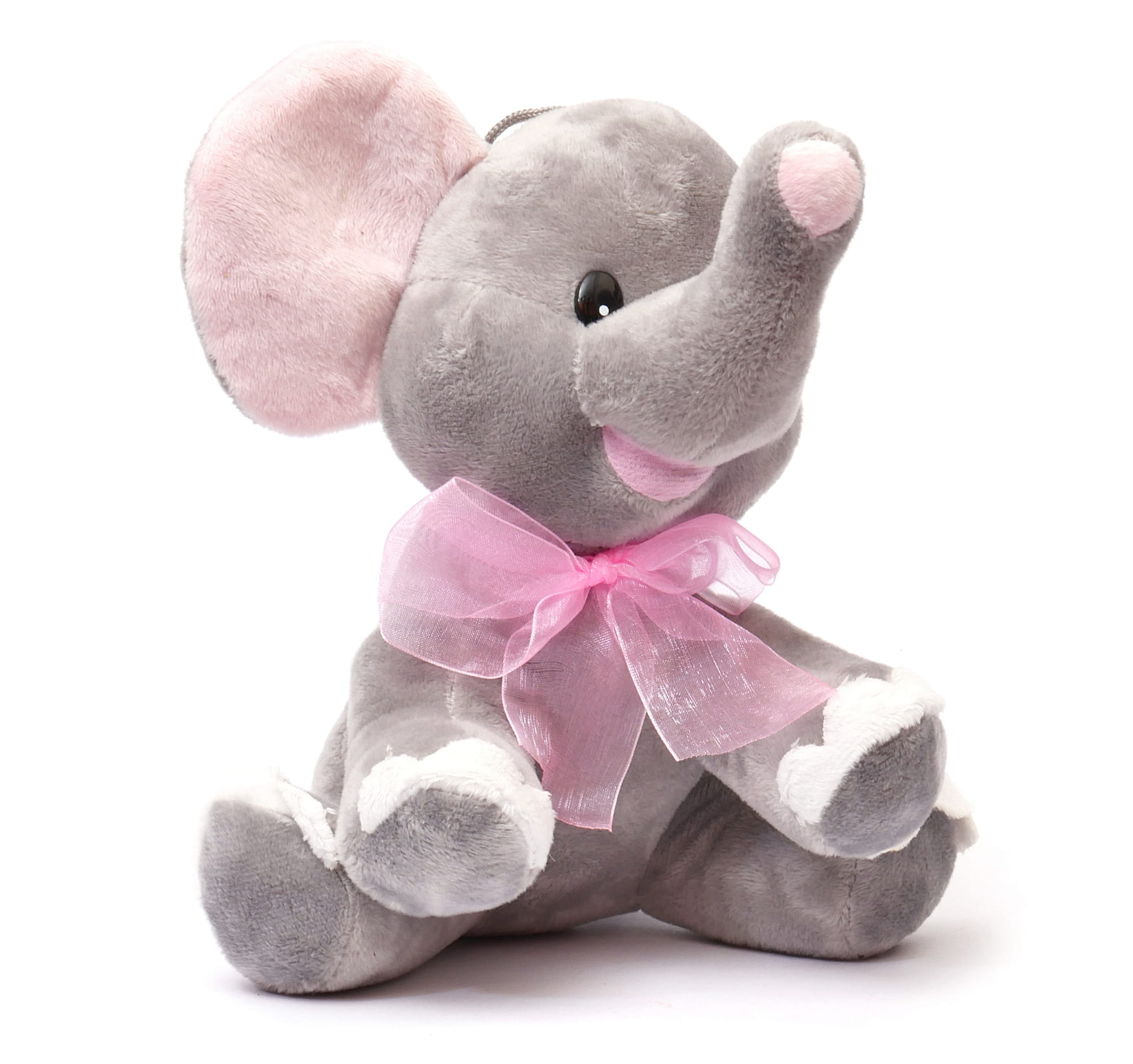 Przedstawiamy ślicznego szarego słonika. Ma jak on na słonia przystało ogromne uszy i zawadiacko uniesioną trąbę. Nasz słonik posiada również elegancką kokardę, która nadaje mu charakteru. Pluszak wykonany jest mięciutkiego i przyjemnego w dotyku pluszu, tak że posiada wszystkie niezbędne atrybuty by się stać najukochańszą maskotką.