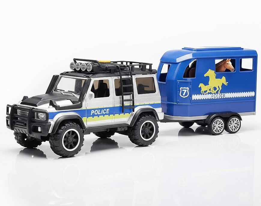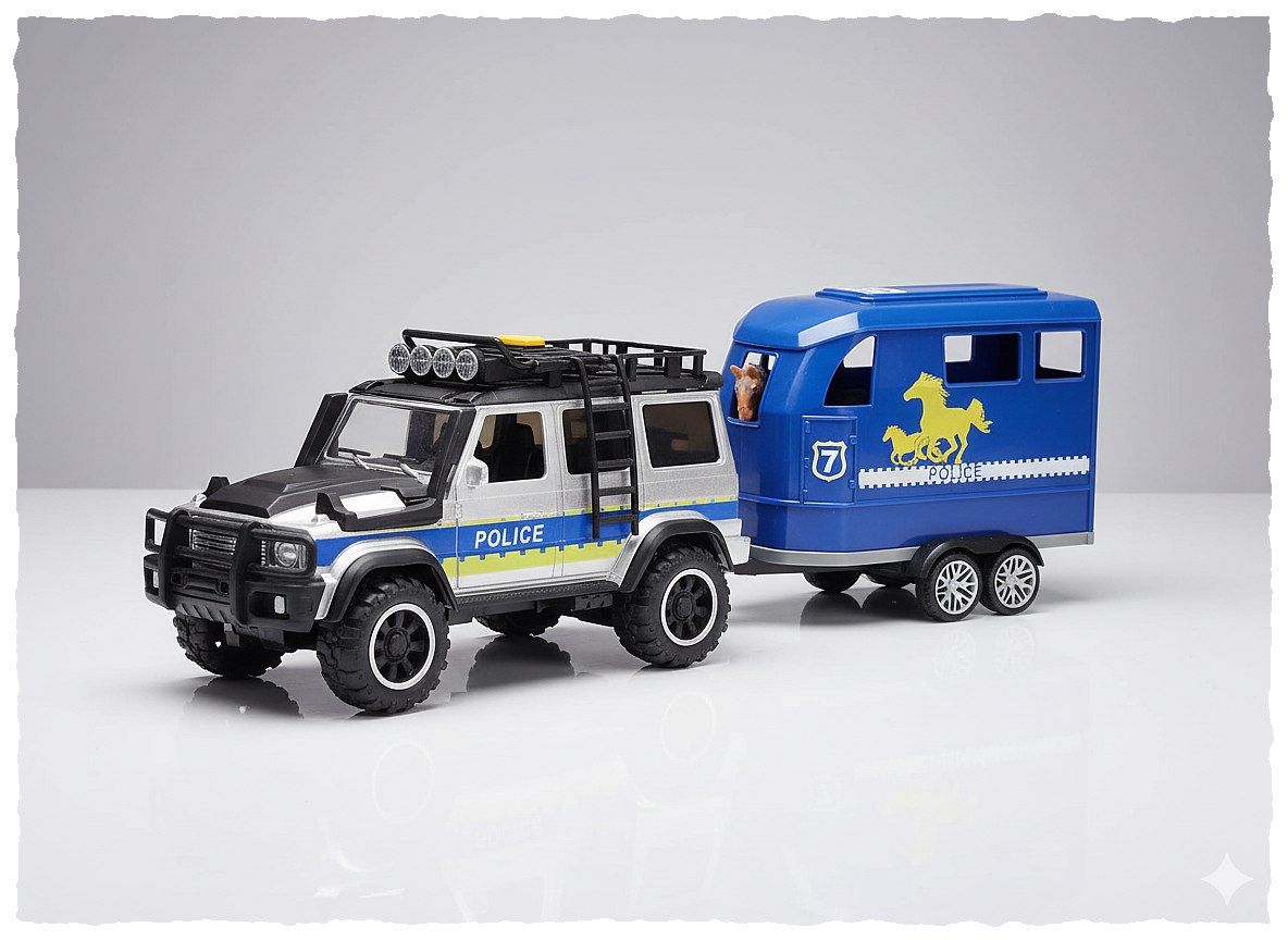 Samochód Terenowy Policyjny z Przyczepą do Przewozu Koni – Akcja i Pasja w Jednym Zestawie!