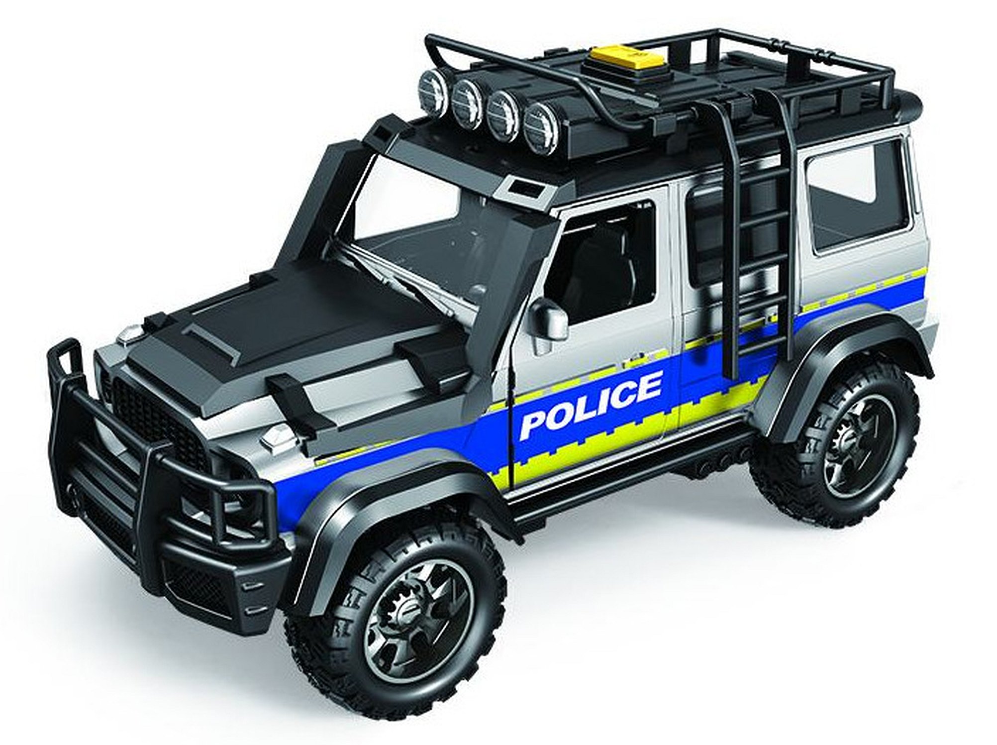 Policyjny Samochód Terenowy 4x4: Solidny, szczegółowo wykonany pojazd, który poradzi sobie w każdym terenie. Prawdziwy, niepowtarzalny design z elementami chromu i policyjną grafiką.