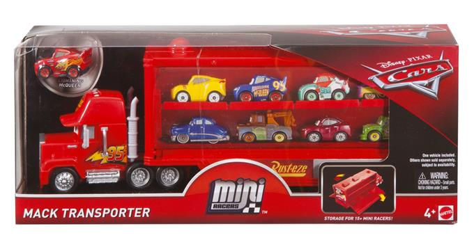 Zabierz metalowe minipojazdy Disney•Pixar w trasę i baw się dobrze razem ze znanym z filmu Mańkiem. Otwórz boczny panel, aby załadować do 12 wyścigówek lub zjedź nimi po rampie, by pędzić po zwycięstwo. Maniek świetnie się spisuje również jako zabawka do popychania! W zestawie 1 miniaturowy metalowy pojazd Zygzak McQueen, inne pojazdy są sprzedawane oddzielnie w zależności od dostępności.