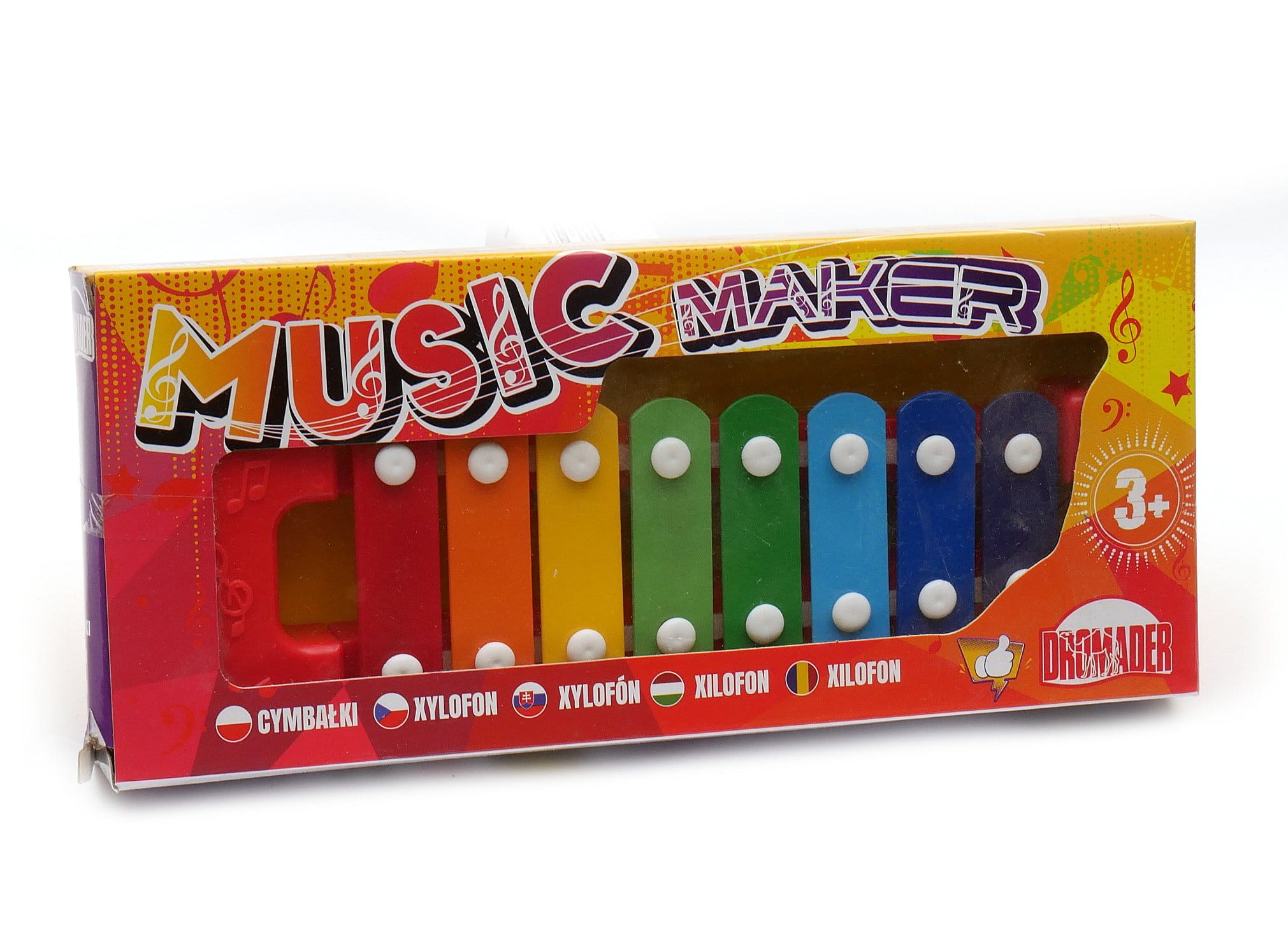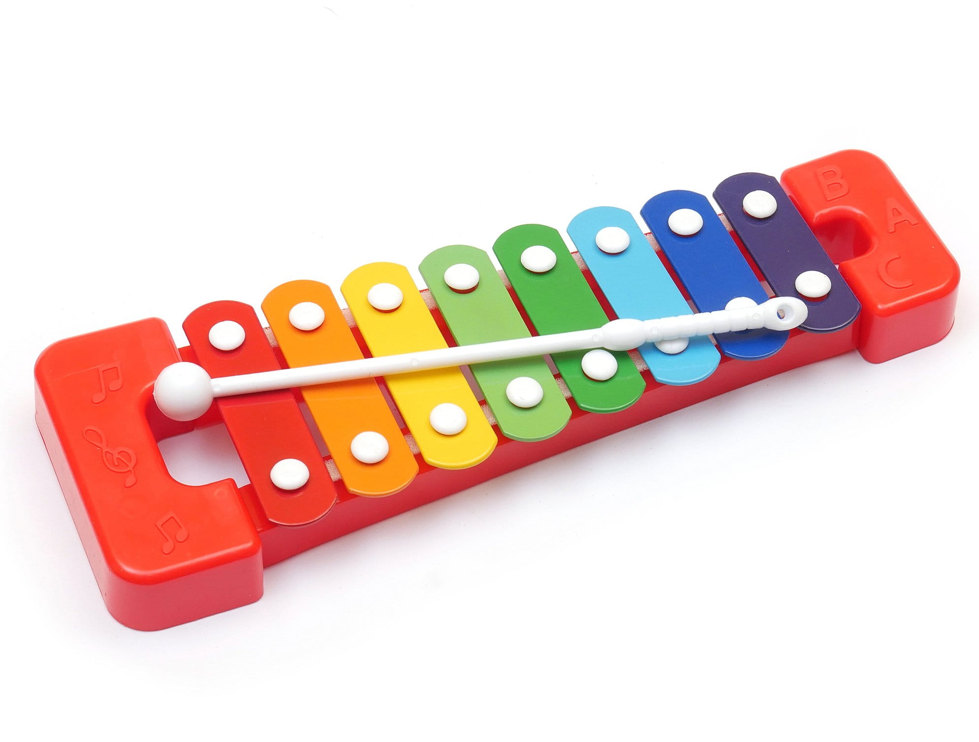 Każda z blaszek gra jeden z 8 tonów: do re mi fa sol la si do (pełna gama). Maluch może tworzyć własne kompozycje muzyczne i przy okazji uczyć się nazw poszczególnych dźwięków.