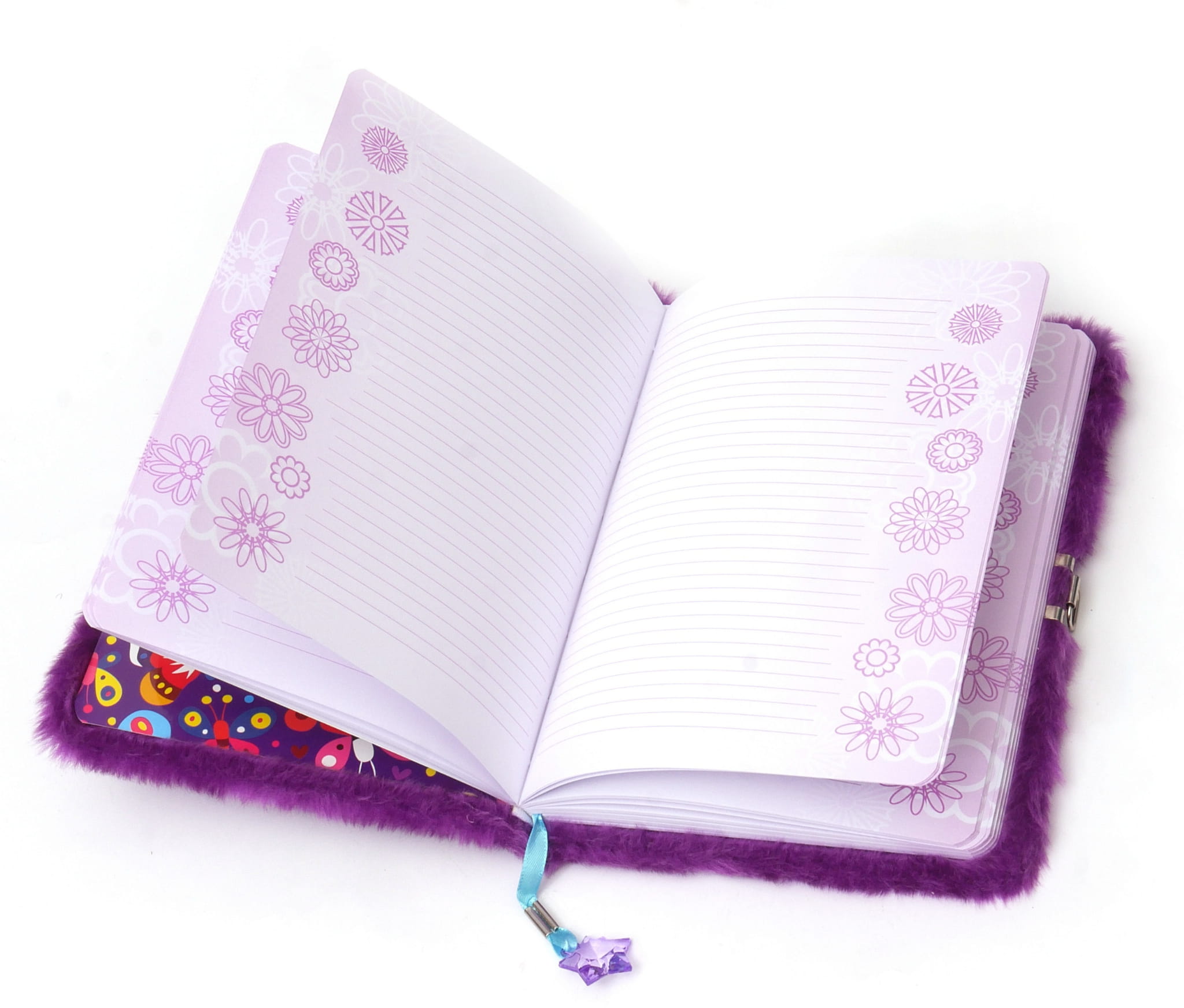Pamiętnik z kłódką pluszak 96 kartek Motyle fiolet
