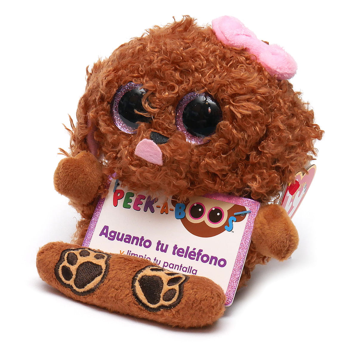 Pluszowa maskotka, która pełni rolę również podstawki pod telefon. Zabawka świetnie sprawdzi się w tej roli będąc również niewątpliwą ozdobą każdej półki lub toaletki. Zelda to piesek z dużymi błyszczącymi oczami o kudłatej sierści, a wyjątkowego charakteru nadaje jej różowa kokardka.