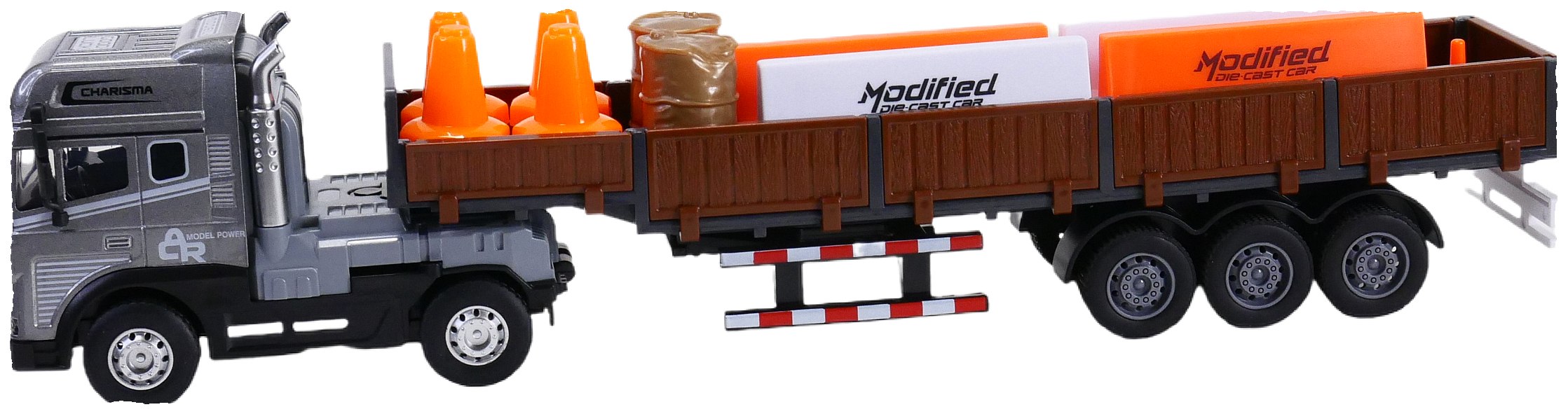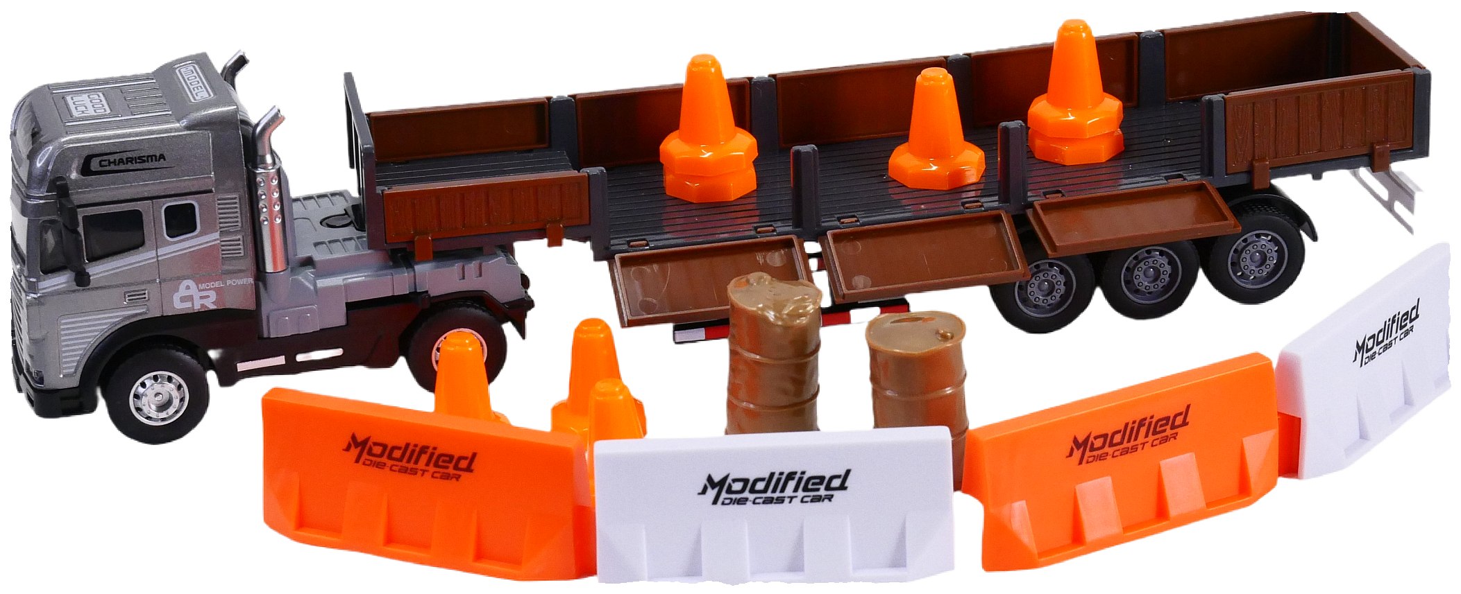 - Barierki ochronne z napisem „Modified Die Cast Truck” – idealne do wyznaczania stref robót