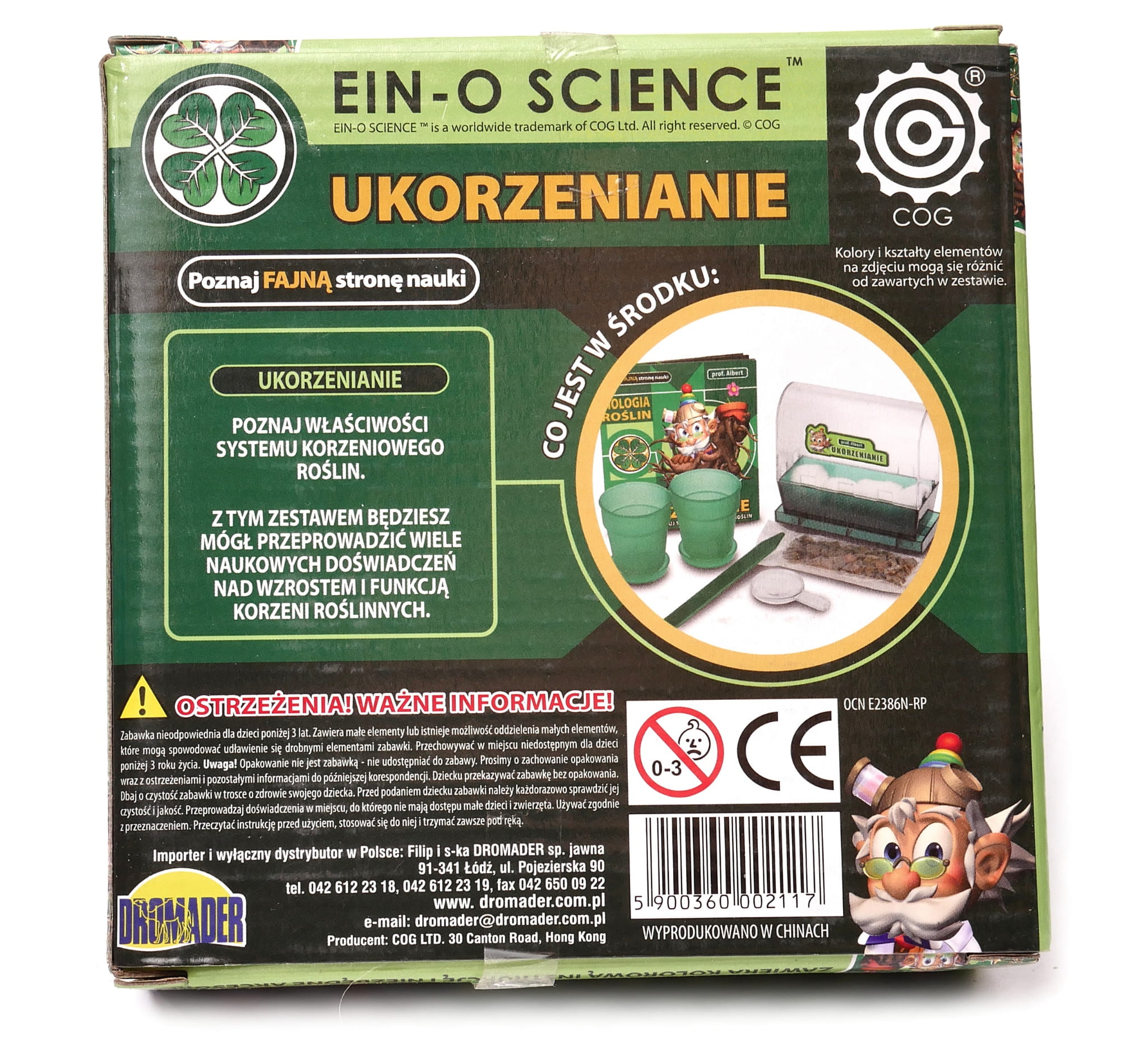 EIN-O SCIENCE - to seria zestawów edukacyjnych pozwalających zapoznać się z otaczającym nas światem, tłumaczących dziecku zachodzące w okuł zjawiska w sposób przystępny łącząc zabawę z nauką. Marka jest znana i ceniona na świecie, a teraz dostępna również w Polsce. Zestawy są całości w j. polskim (zarówno opakowanie jak i instrukcja)