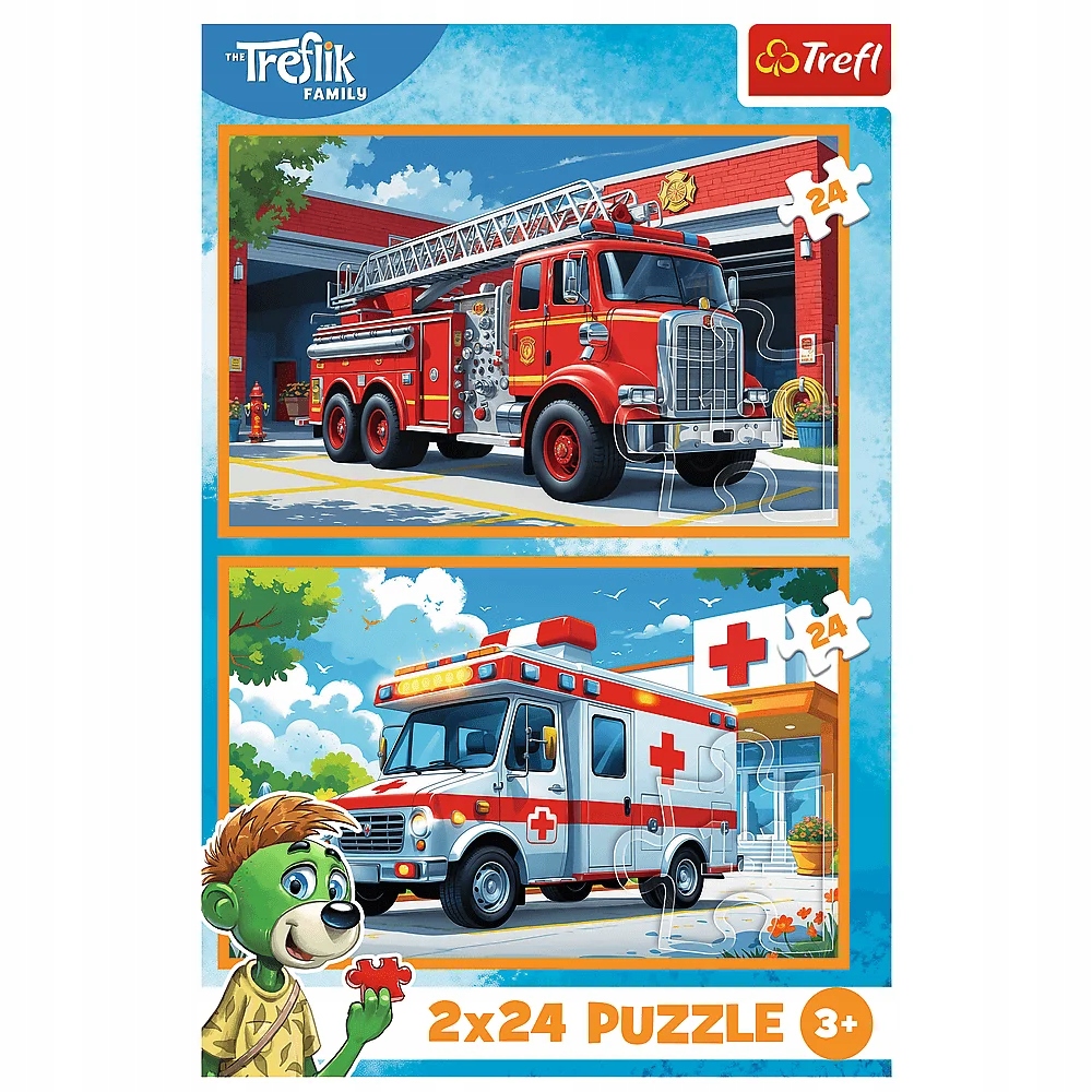 Puzzle Trefl 2w1 2x 24 elementy Wóz Strażacki i Karetka Pogotowia