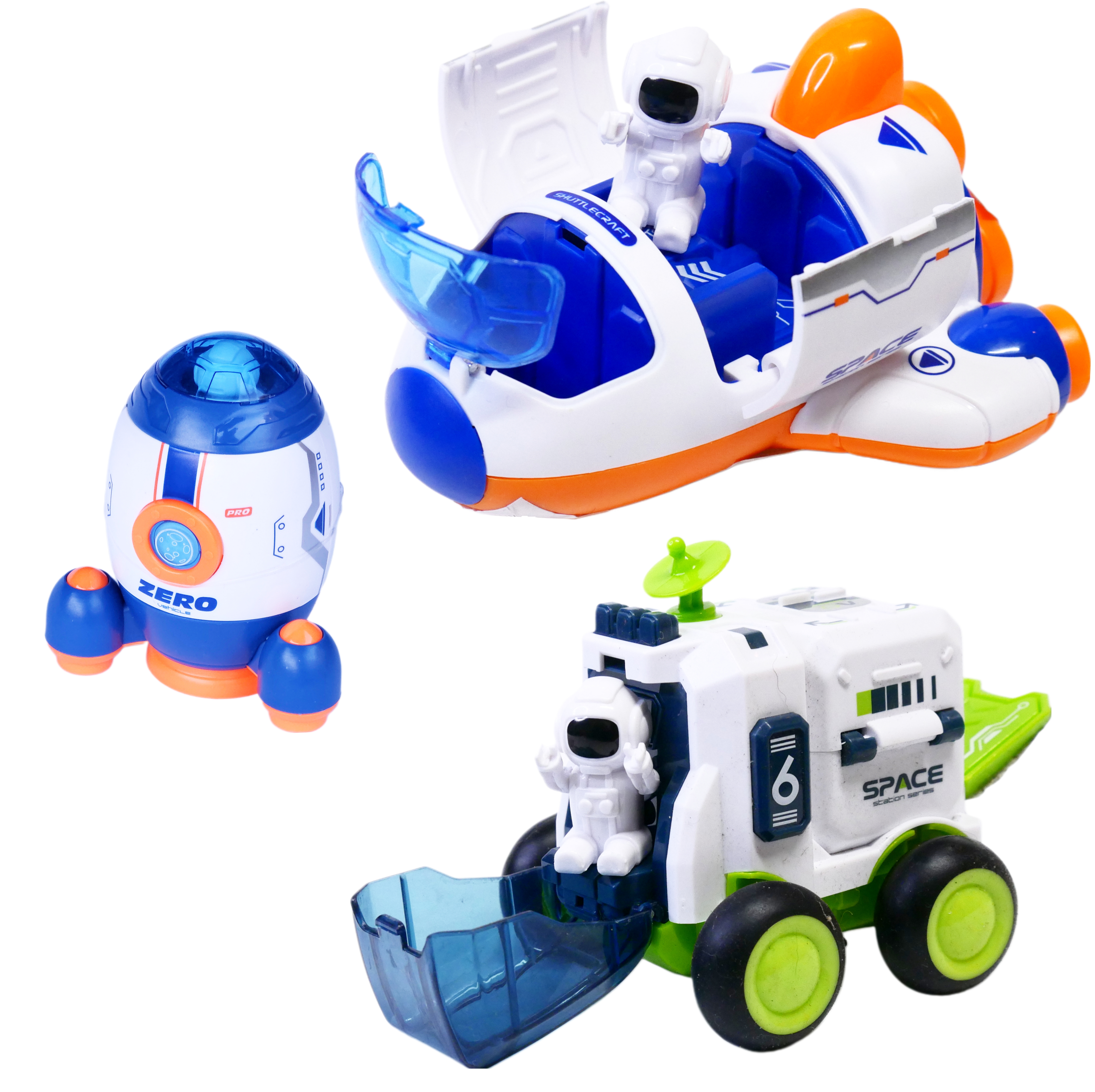 Rakieta kosmiczna + prom kosmiczny i łazik marsjański z figurkami kosmonauta