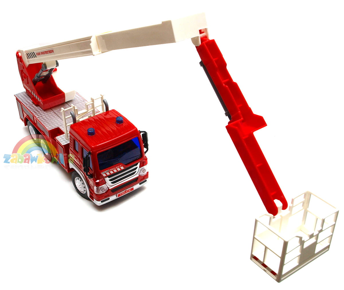 Duży "wypasiony" wóz strażacki i do tego zdalnie sterowany to wspaniały prezent dla każdego małego fana formacji od gaszenia pożarów. Teraz każdy z nich może stanąć za kierownicą i jak prawdziwy strażak ruszyć do akcji. Auto wyposażone jest w rozkładany podnośnik koszowy z armatką wodną, ma gumowe opony i reflektory, które włączają się zawsze podczas jazdy do przodu oświetlając drogę dzielnym strażakom. Zabawa takim autem gaśniczym straży pożarnej pozwoli chłopcom wcielić się w rolę strażaka choćby w małej części.