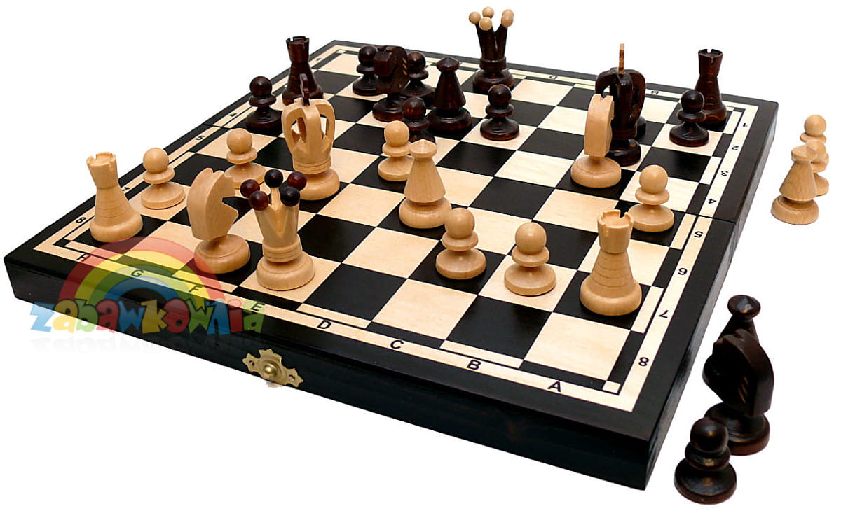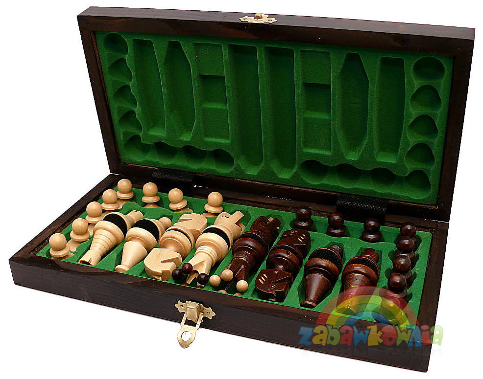 Królowa gier w wydaniu drewnianym. Zarówno pudełko jak i figury wykonane z drewna, a całość zamykana na zamek zatrzaskowy. Wewnątrz welurowy pokrowiec z wytłoczeniami n każdą figurę. Takie eleganckie wydanie gry spodoba się każdemu młodemu szachiście. Gra wykonana jest z wysoko gatunkowego drewna z dbałością o szczegóły wykończenia zarówno figur jak i pudełka będącego równocześnie planszą.