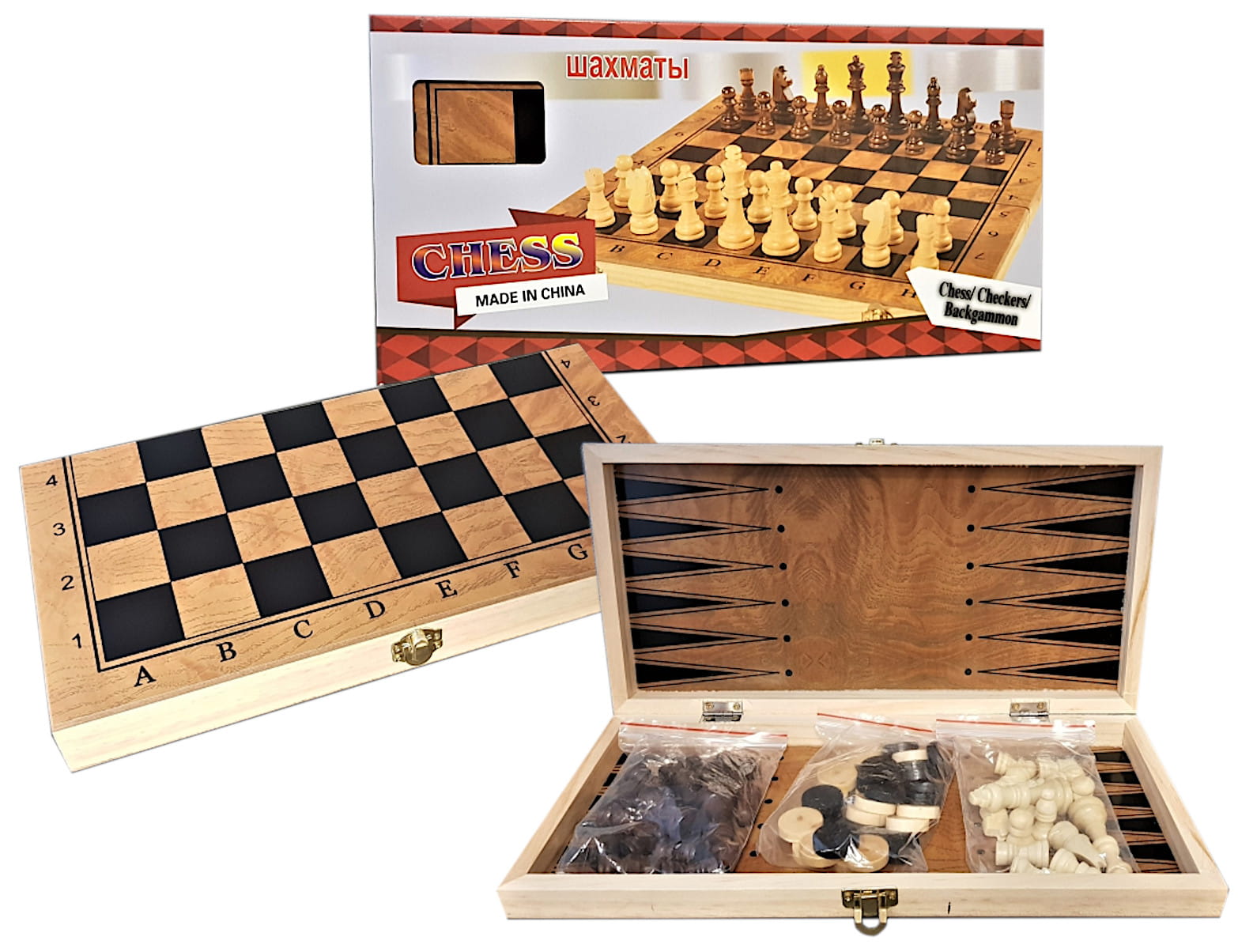 SZACHY + WARCABY + Tryktrak Szacho-Warcaby drewniane