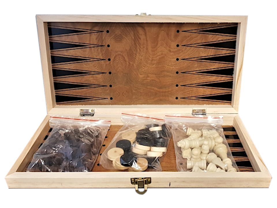 Dodatkowo zestaw został wzbogacony o pionki do gry w warcaby i tryktrak.
