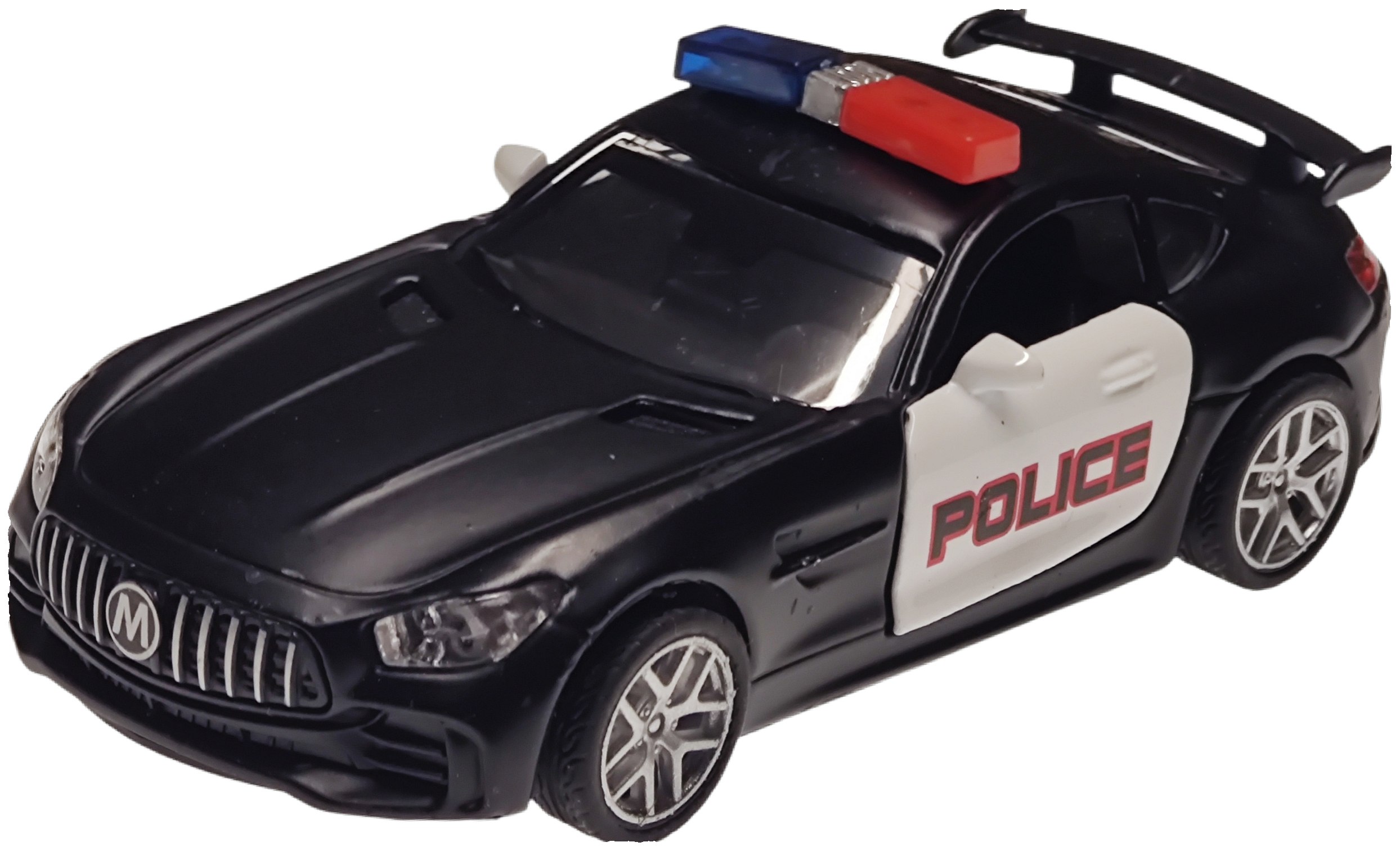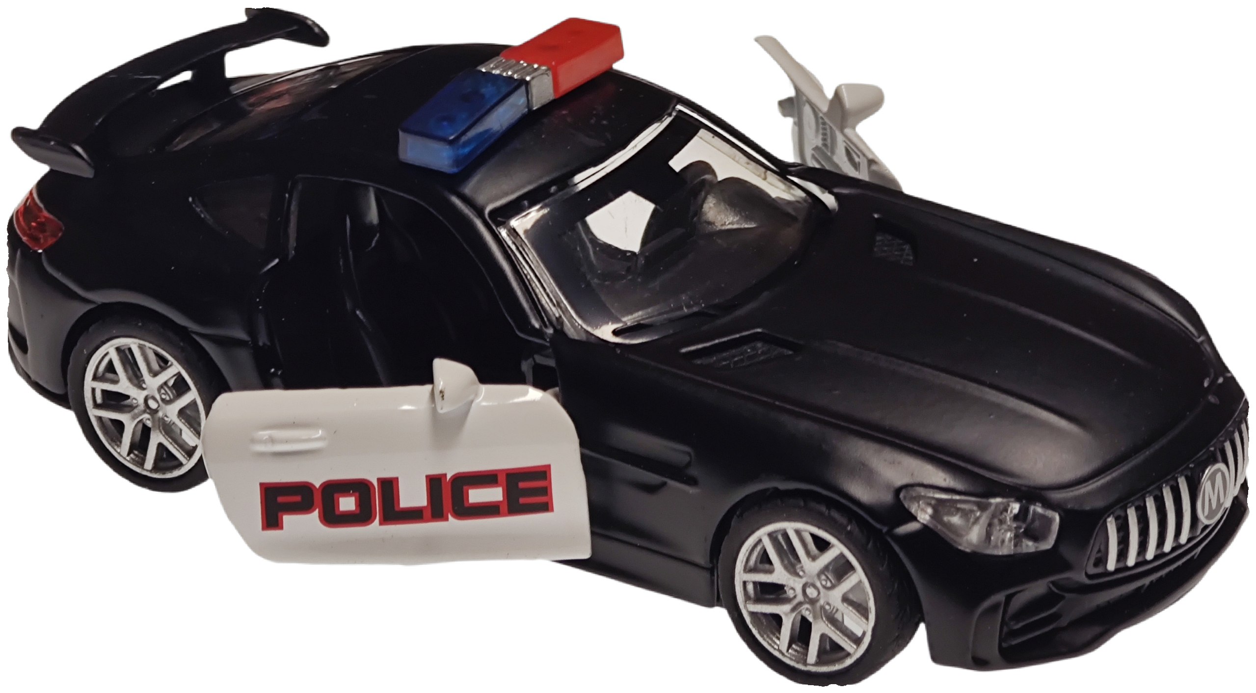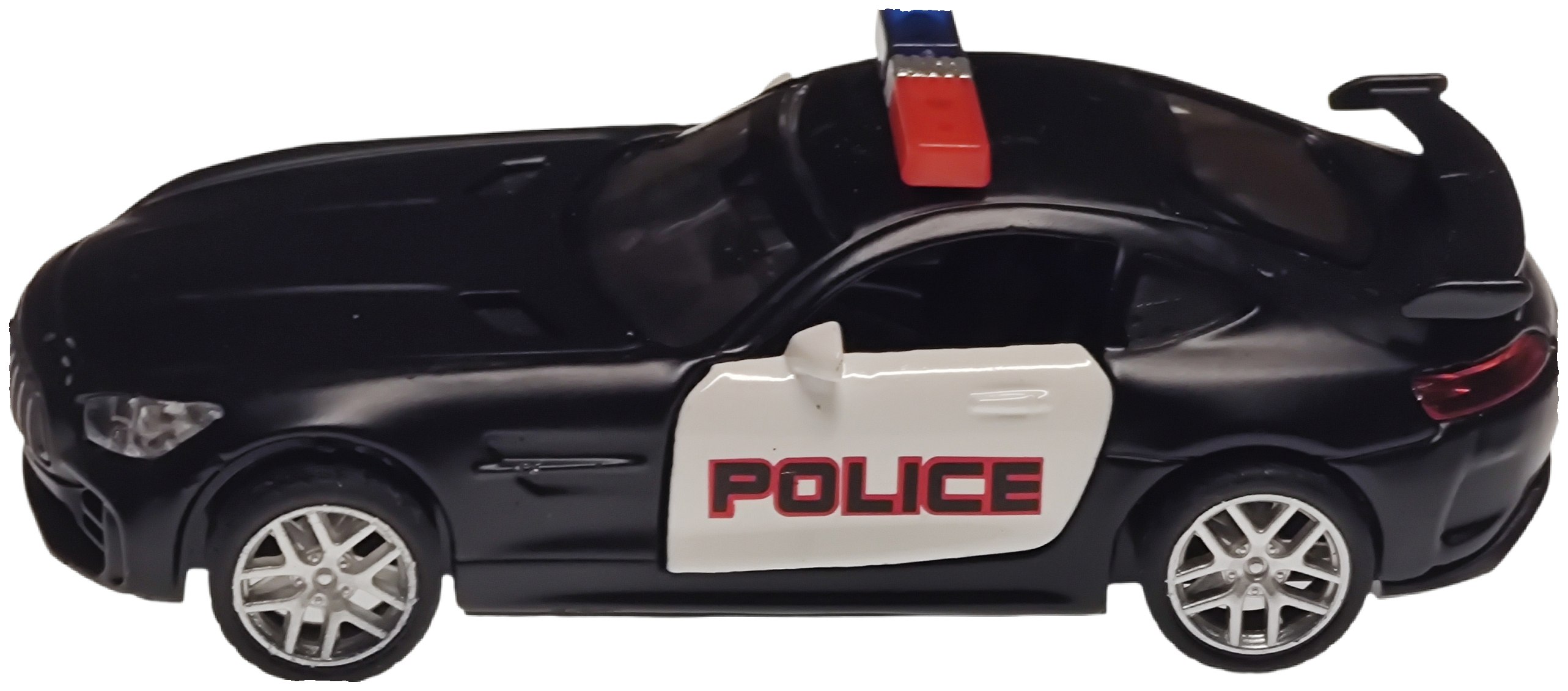 Czarny Samochód Policyjny AMG GT R z Funkcjami Światło/Dźwięk i Napędem Pullback