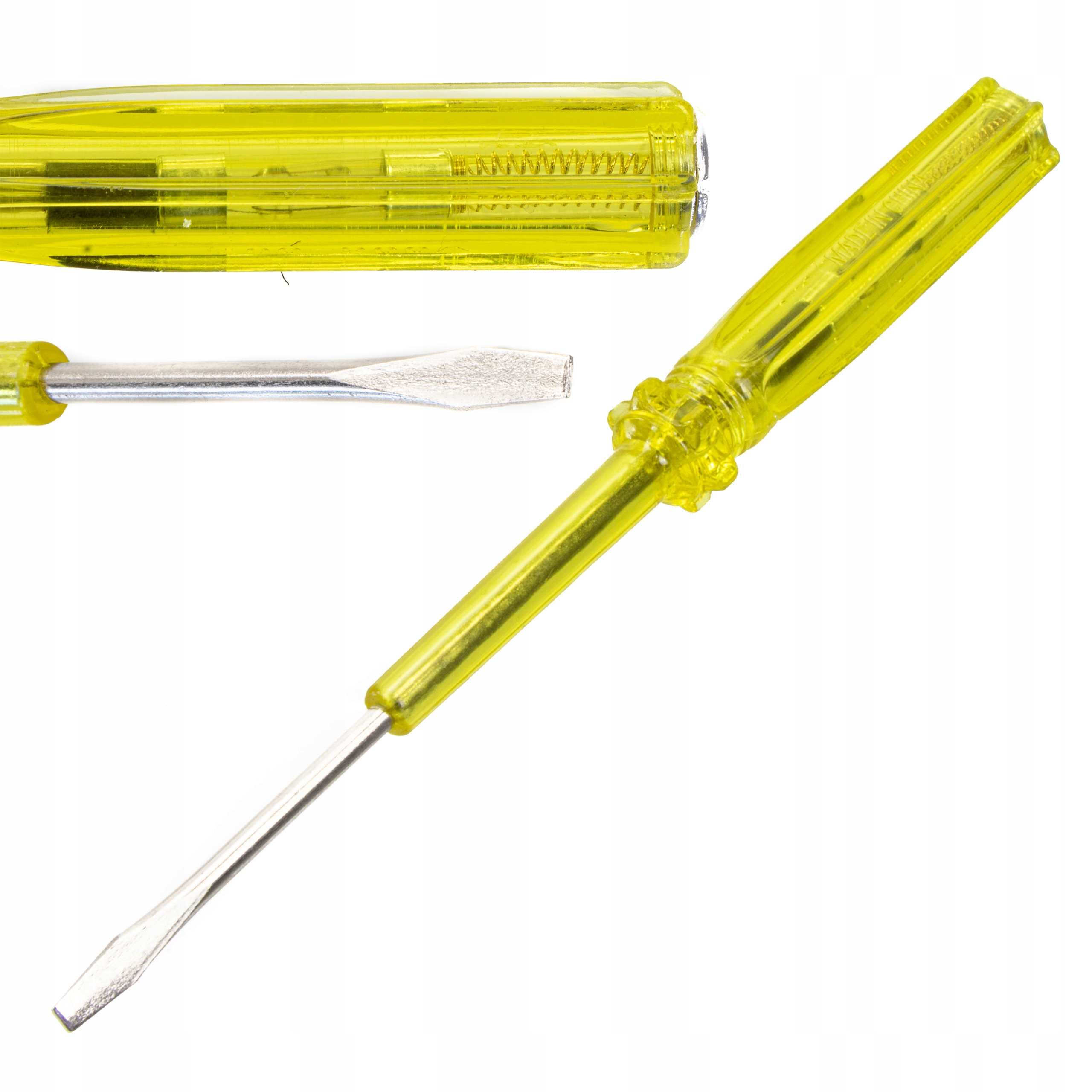 Wkrętakowy próbnik napięcia to proste narzędzie do sprawdzenia napięcia w gniazdku lub wykrycia przewodu fazowego w sieci elektrycznej.