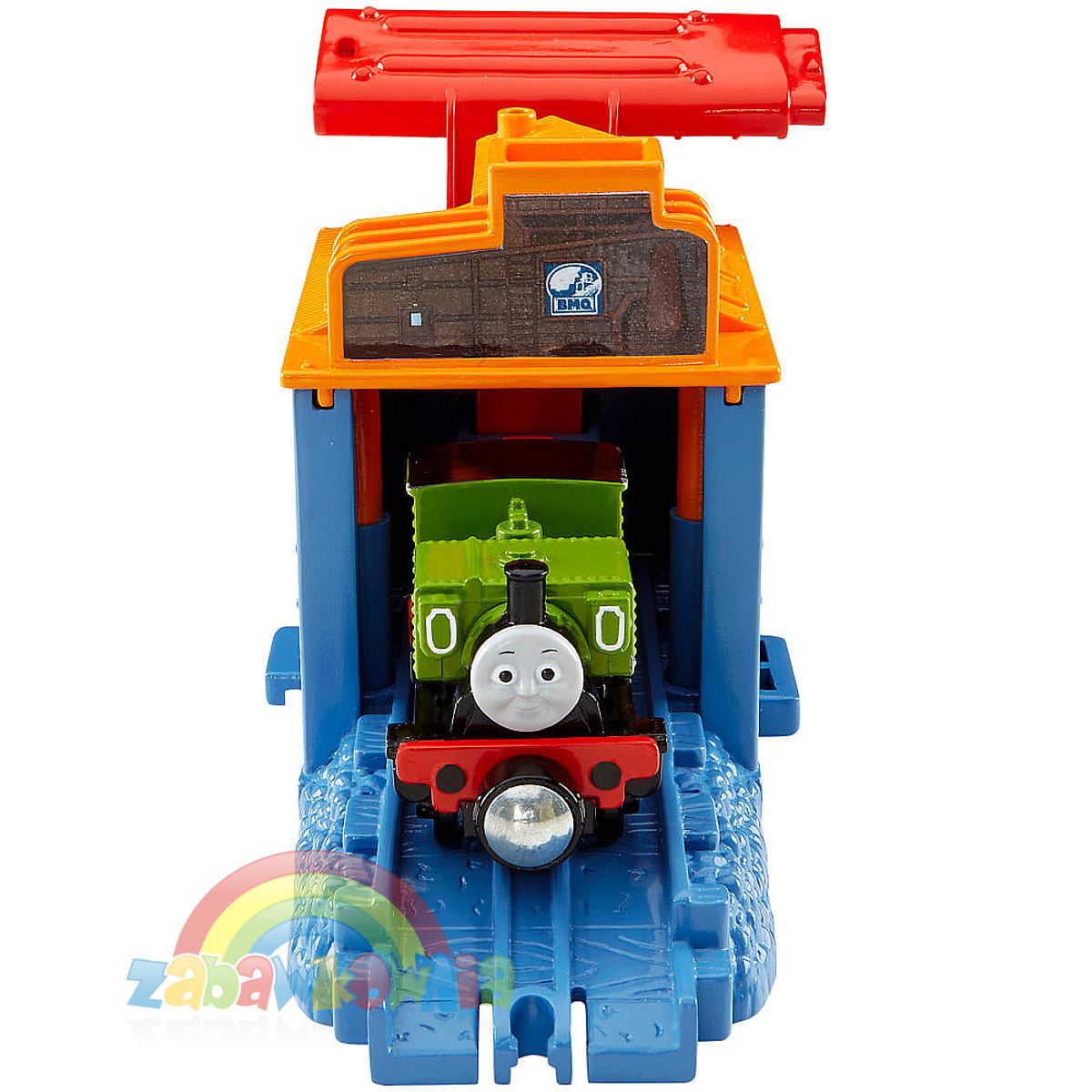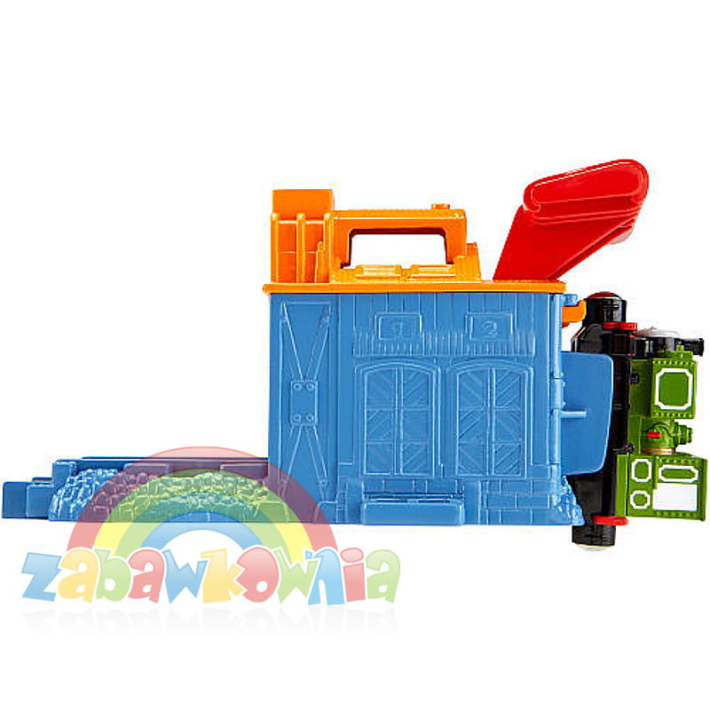 Zestaw składa się wystrzałowej wyrzutni, która wprawi w ruch lokomotywkę. Wystarczy włożyć ją do budynku i nacisnąć dźwignię, a lokomotywa pomknie przed siebie z niesamowitą prędkością. Teraz Twoje lokomotywki będą śmigać jak prawdziwe. Po zabawie lokomotywkę można zamontować na specjalnym torze z tyłu na wyrzutni i odłożyć na półkę.