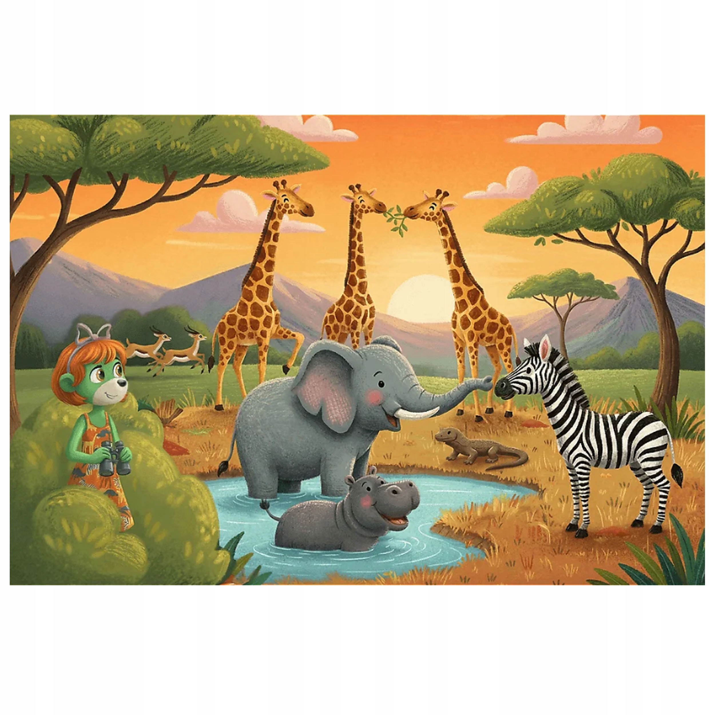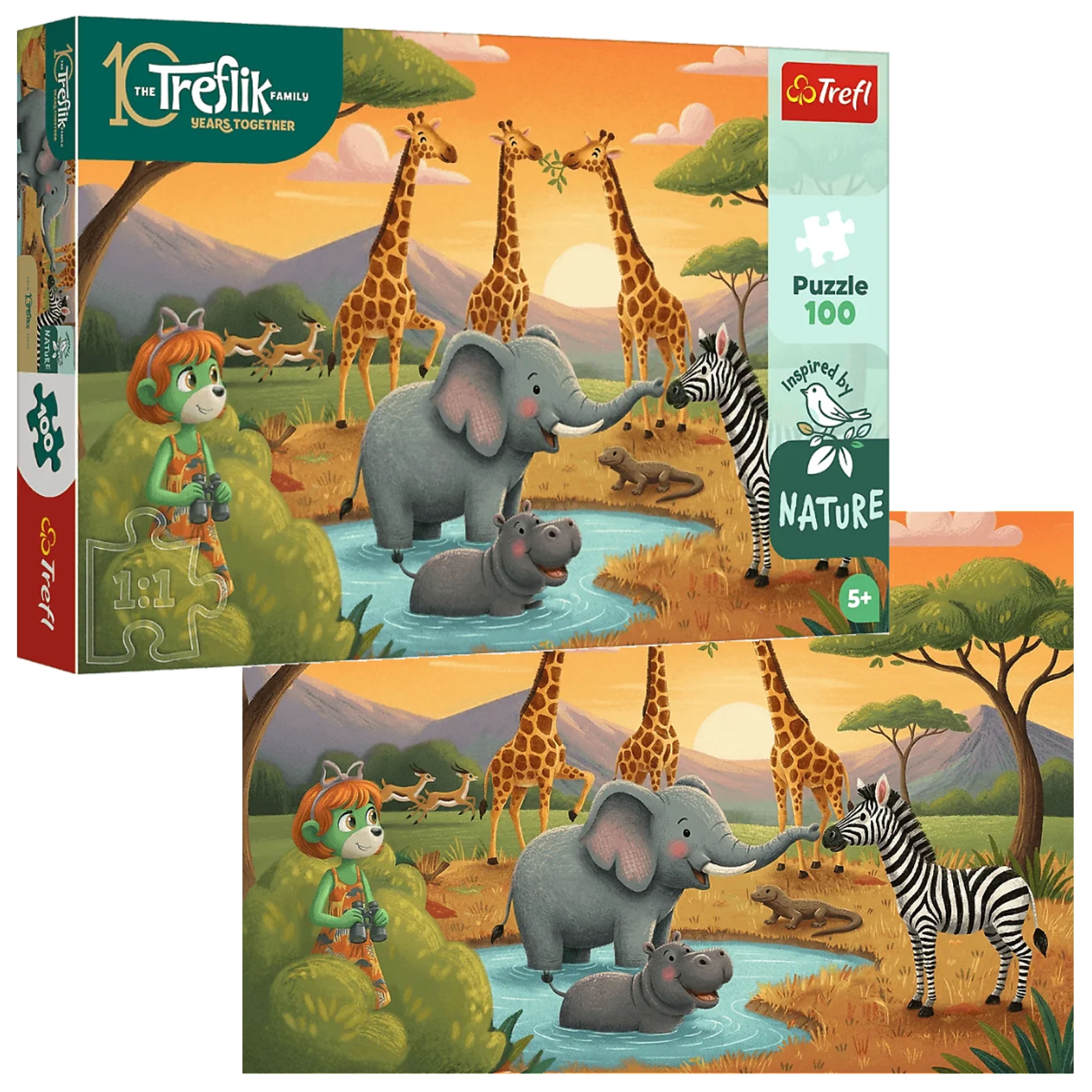 TREFL puzzle 100 Safari Treflików Afryka żyrafy słonie i hipopotam