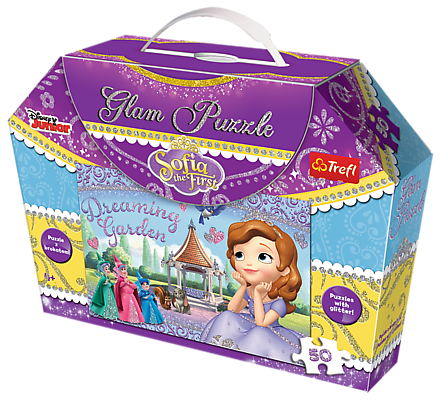 Puzzle składające się 100 elementów z obrazkiem , na którym znajdziemy postacie z filmu Disneya. Po ułożeniu powstanie obrazek o wymiarach 41x27,8cm. Puzzle Glam to fascynująca zabawka dla dziewczynek, które lubią błyszczące obrazki. Puzzle pokryte są miejscami delikatnym, mieniącym się w świetle brokatem i po ułożeniu prezentują się rewelacyjnie. Opakowanie w kształcie eleganckiego kuferka posiada wygodny uchwyt do przenoszenia.