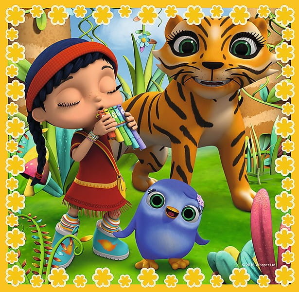 Układanka z bardzo wyraźnymi kolorami i dużymi elementami stworzona specjalnie dla mniejszych dzieci, które z łatwością je dopasują.