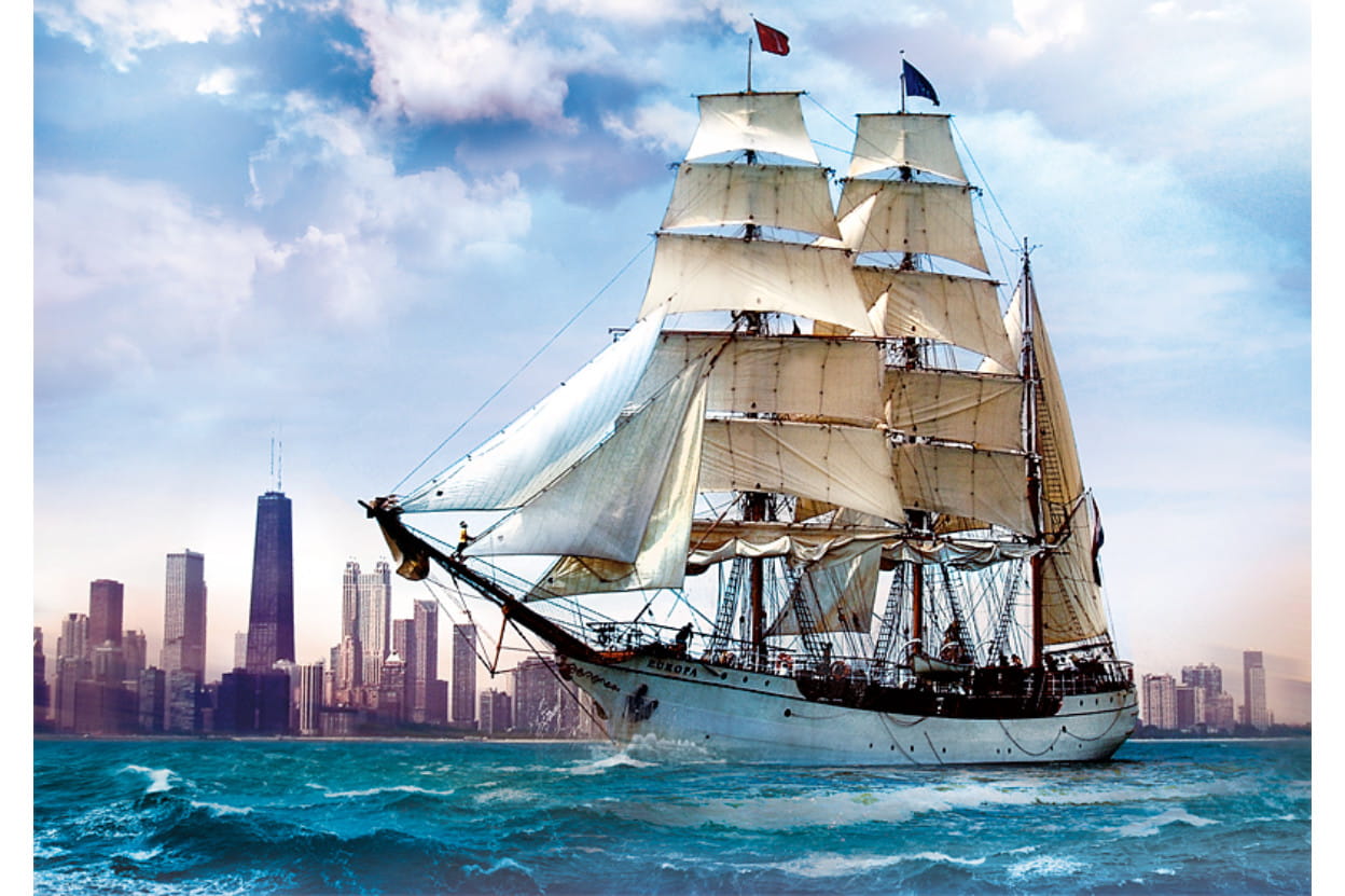 Trefl puzzle 500 el Żaglowiec na tle Chicago