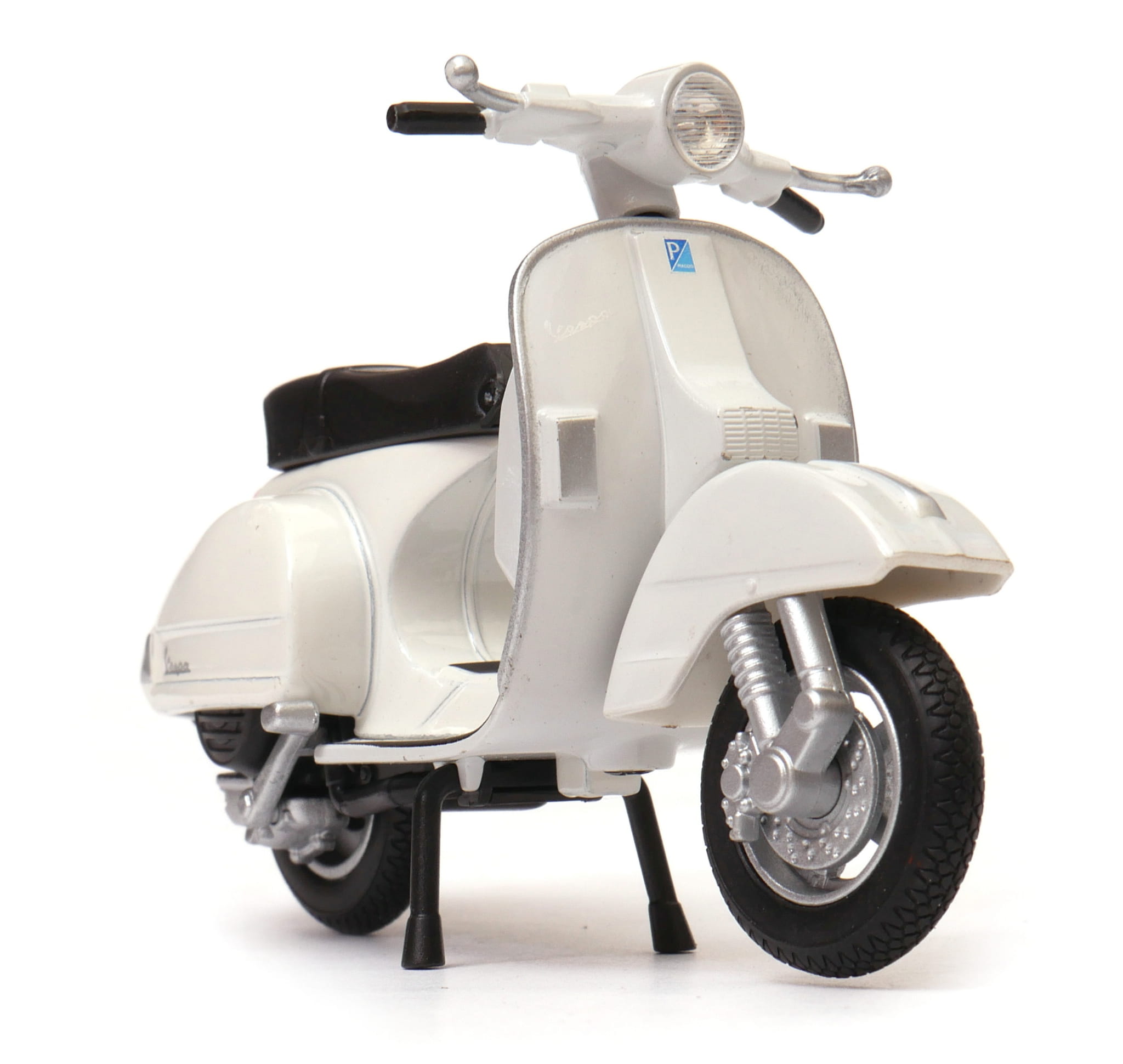 Model ma amortyzowane sprężynowo tylne koło, ruchomą kierownicę i stopkę.