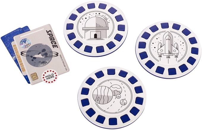 Spójrz przez nie na krążek z rozszerzenia i naciśnij dźwignię, aby polecieć w kosmos!