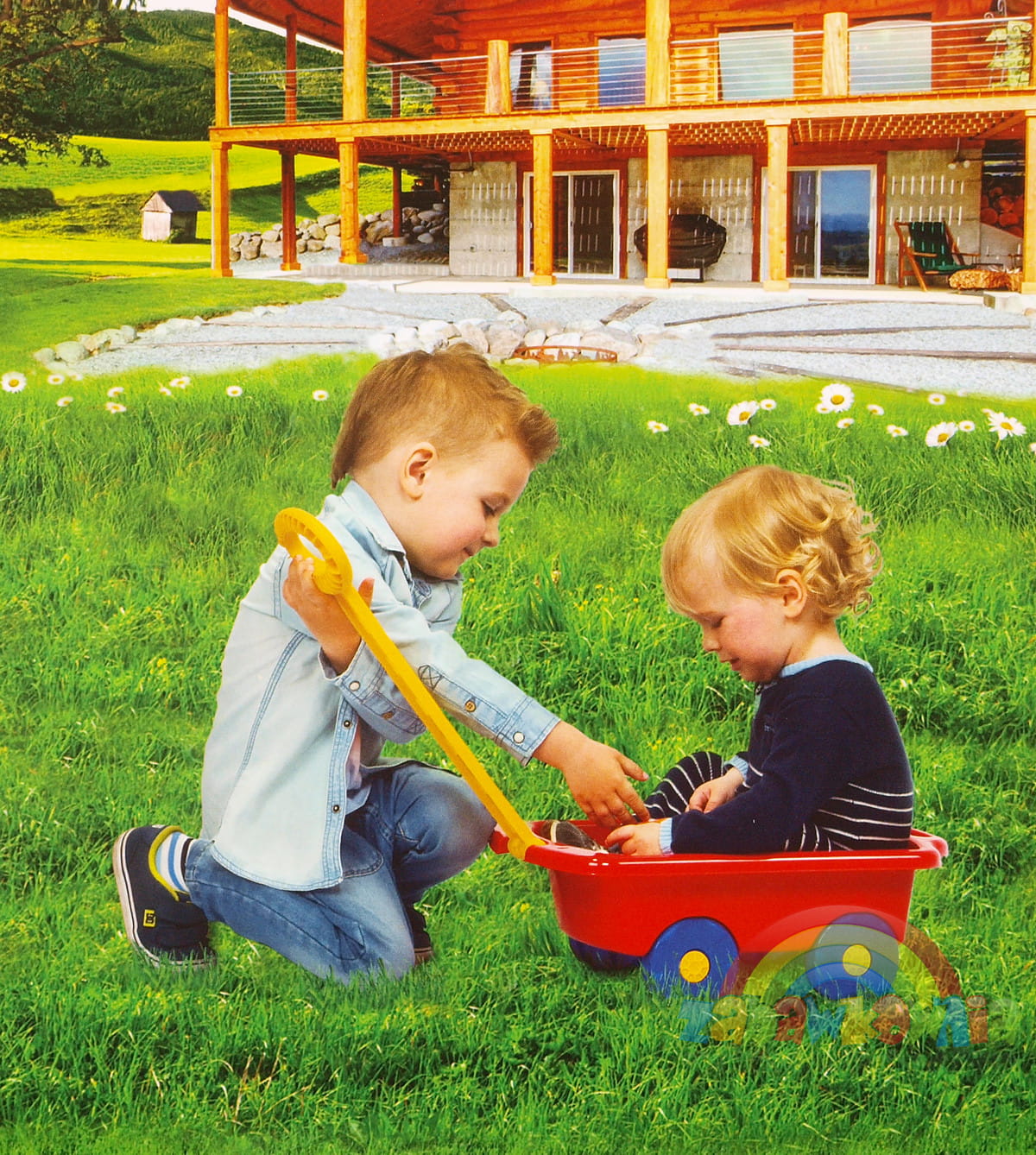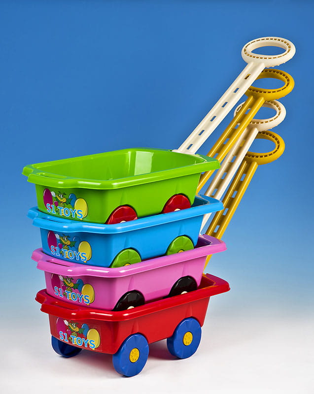 Wygodny i stabilny wózek w całości wykonany najwyższej jakości tworzywa sztucznego. Świetnie sprawdzi się zarówno w domu jak i ogrodzie. Można będzie nim wozić dziecięce skarby, zabawki lub piasek.