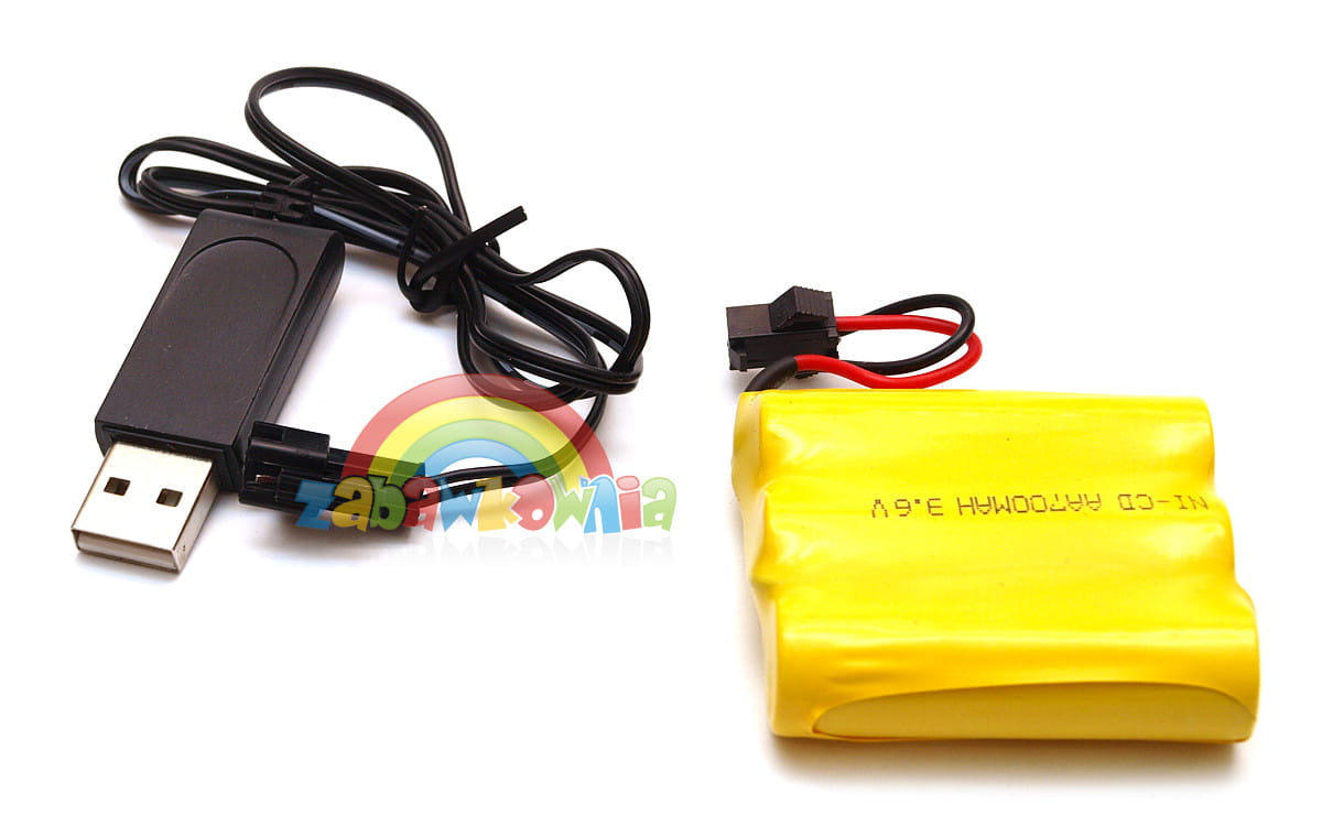 zasilanie: pilot 2 x 1,5V LR06 AA (dołączone); auto pakiet akumulatorków 4,8V 800mA (dołączona ładowarka)
