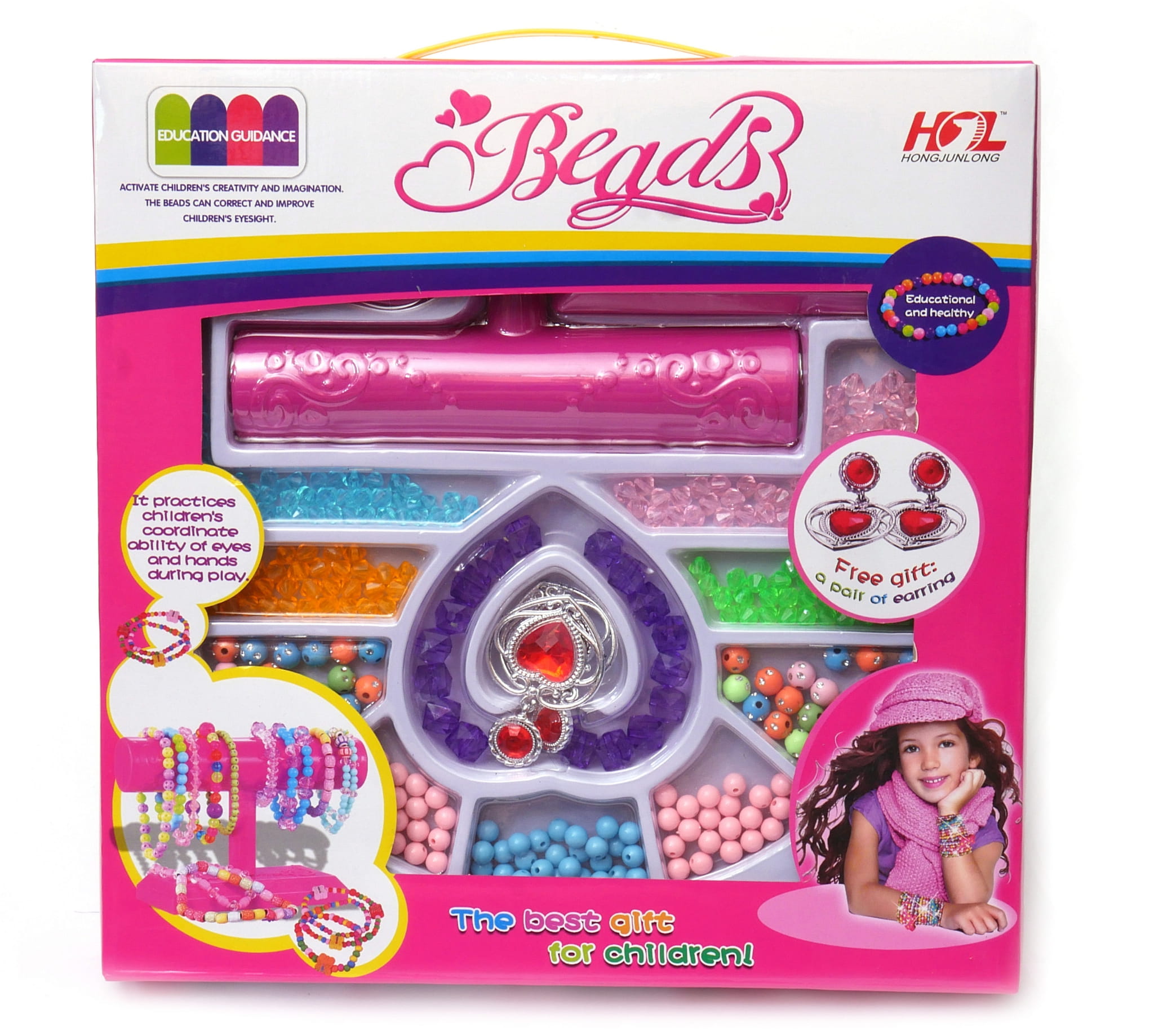 W eleganckim opakowaniu zamknięty został zestaw pełen kolorowych koralików. Paciorki wykonane są z plastiku, a część z nich jest z materiałów przeźroczystych przypominając piękne kryształki. Wykonane z nich naszyjniki i bransoletki będą cieszyły oko każdej dziewczynki tym bardziej.