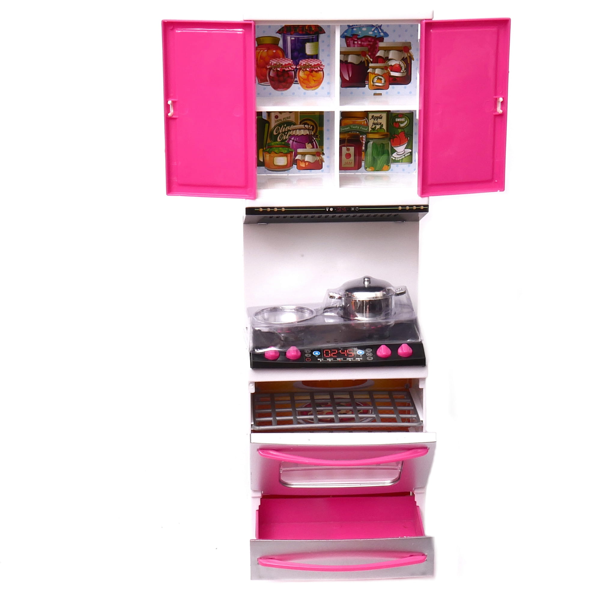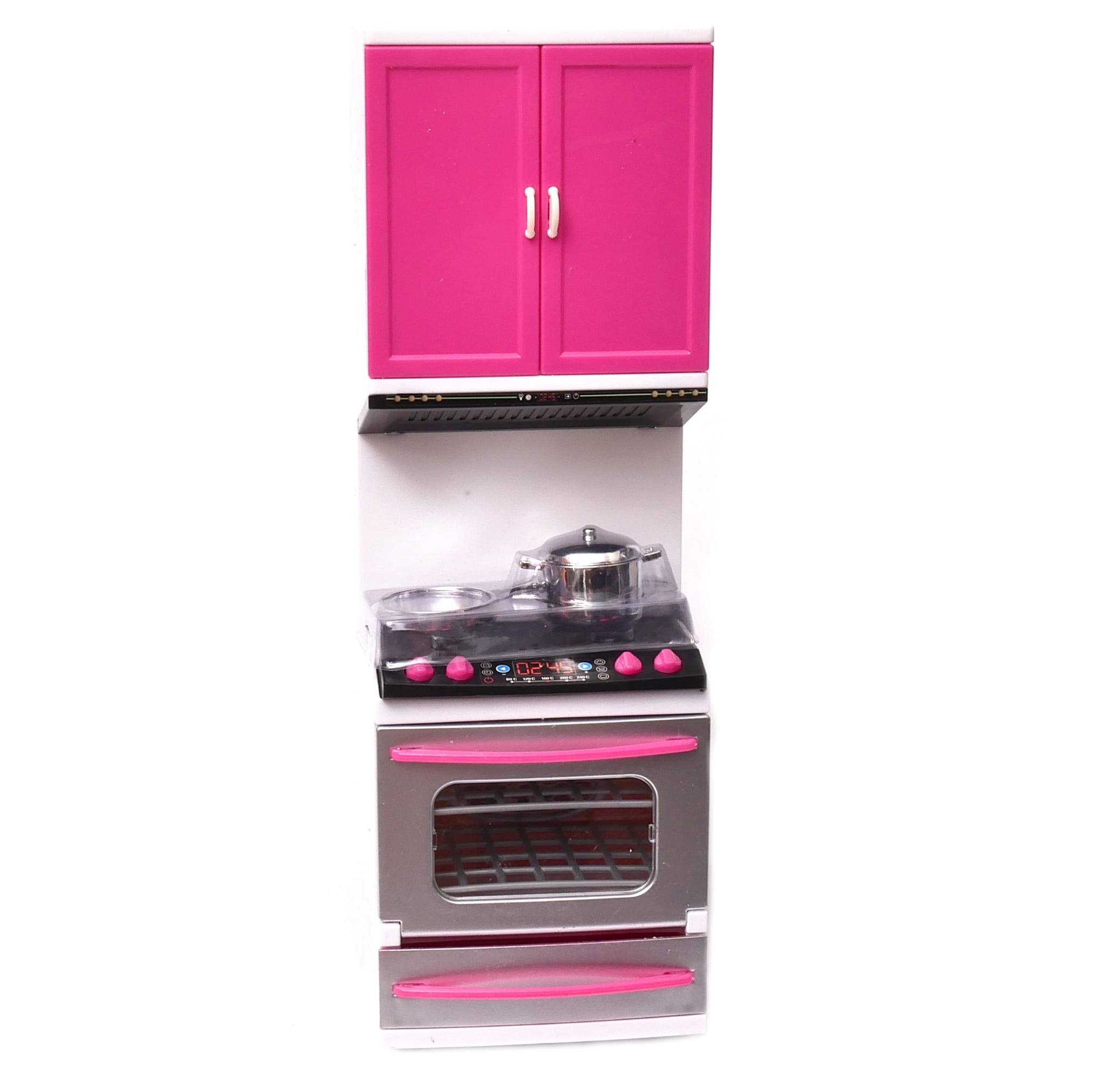 Zestaw mebelków dla lalek typu Barbie lub Steffi. Zestaw składa się kuchenki z piekarnikiem i szafek. Do zestawu dołączone są naczynia (widoczne na zdjęciu). Wszystkie drzwiczki są otwierane, a kuchenka i piekarnik wyposażone w światło imitujące pracę i odgłosy otowania.