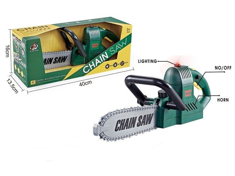Ta piła łańcuchowa zasilana jest trzema bateriami 1,5V LR06 AA (nie dołączonymi), co zapewnia długą zabawę bez potrzeby częstej wymiany baterii. Zabawka jest przeznaczona dla dzieci od 3 lat i pomaga rozwijać koordynację ruchową oraz wyobraźnię. Jest to wspaniała zabawka dla małych drwali, którzy chcą naśladować dorosłych i bawić się w sposób realistyczny.