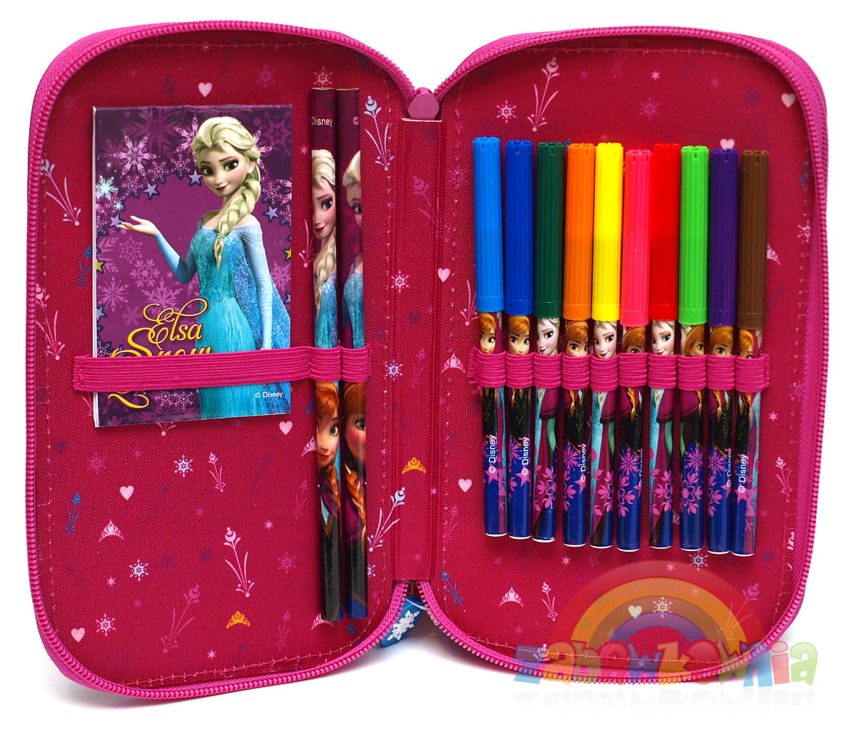Kraina Lodu to motyw jaki zobaczymy nie tylko na prezentowanym piórniku ale także na akcesoriach znajdujących się w jego wnętrzu.