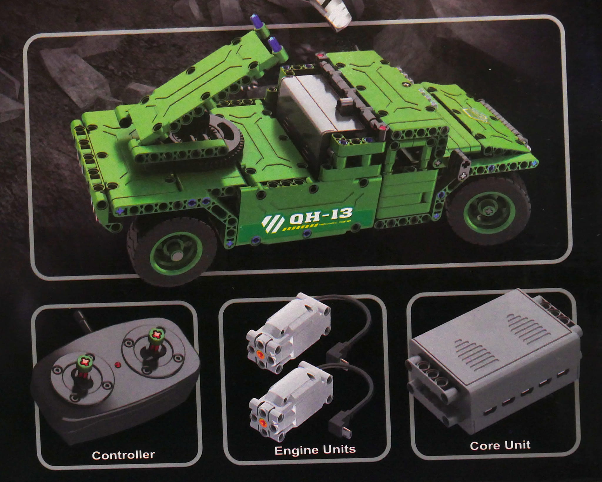 Klocki łączą się z markowymi klockami konstrukcyjnymi i mogą stanowić alternatywę do rozbudowy już posiadanych zestawów o funkcję zdalnego sterowania. Załączony nadajnik i odbiornik potrafi terować dwoma silnikami w obu kierunkach. Daje to duże możliwości konstruktorom. Sterowanie odbywa się w publicznym paśmie 2,4GHz, a poprzez zastosowanie technologii cyfrowej sprawia, że tor jest wyjątkowo odporny na zakłócenia.