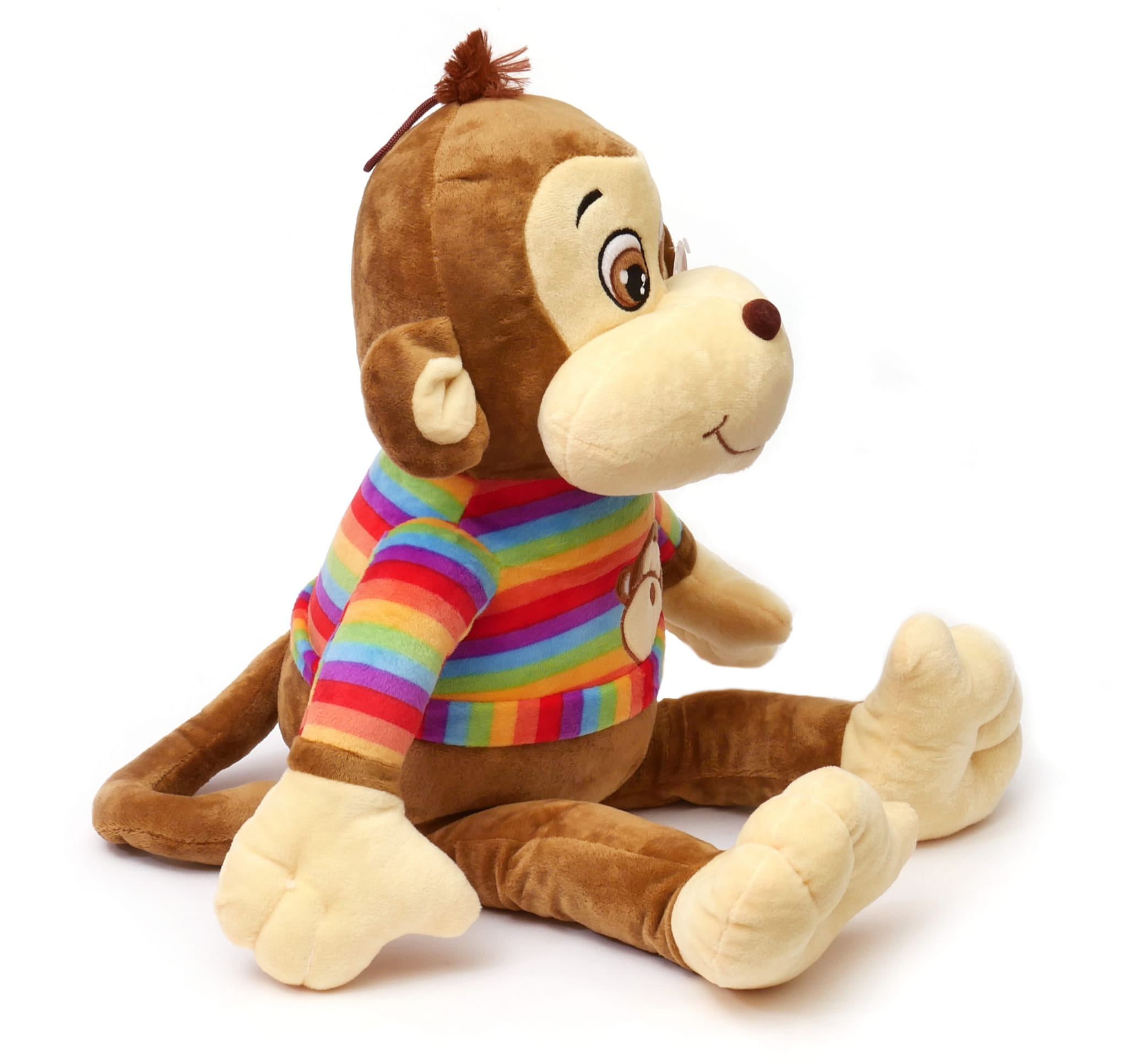 Małpka pluszowa miękka i przyjemna w dotyku. Posiada roześmiany pyszczek i urocze spojrzenie. Dzieci ją pokochają. Ponadto jest ubrana w przykuwającą wzrok kolorową bluzeczkę.