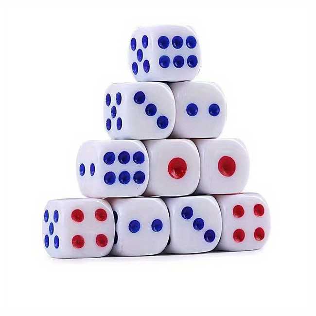 Standardowe kostki do gier. Kostki mają to do siebie, że są małe i lubią się gubić. Taki zapas kostek powinien wystarczyć na długi okres czasu i będziemy mogli cieszyć się grami planszowymi pomimo zagubienia jednej lub dwóch kostek :)