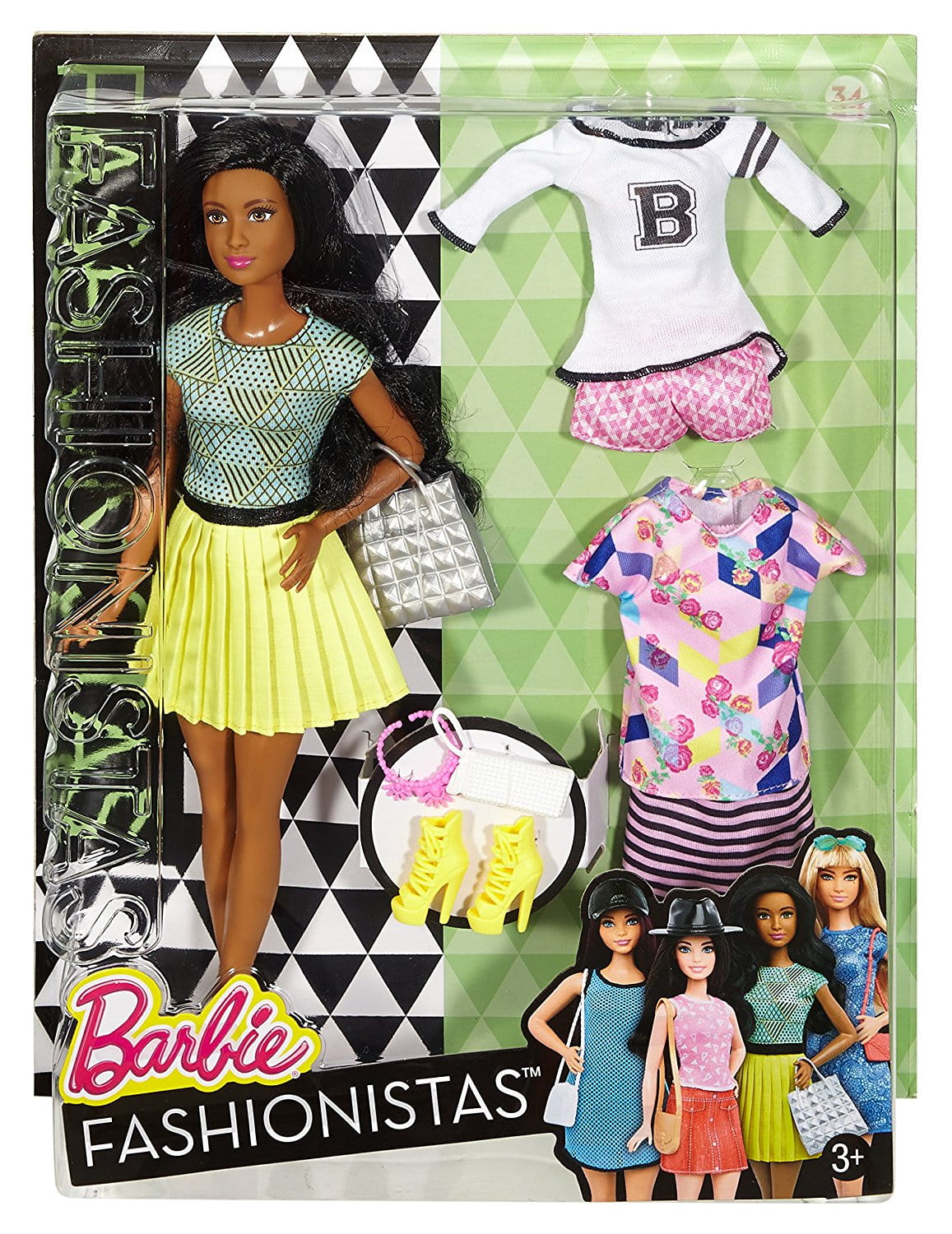 Najnowsza kolekcja lalek serii Fashionistas. Opakowanie zawiera Barbie w wyjątkowym stylu w raz z dwoma dodatkowymi kreacjami, drugą torebką i parą butów na zmianę.