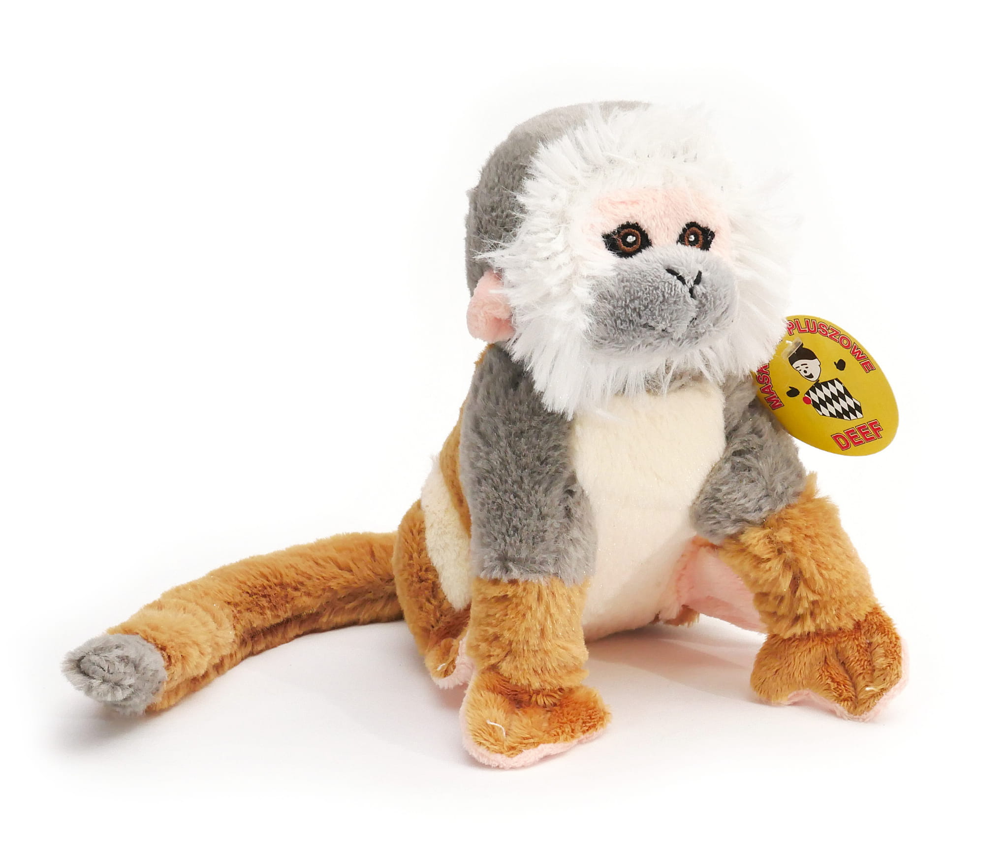 Śliczny małpka. Maskotka wyjątkowo wiernie odzwierciedla zwierzę występujące w naturze. Taki pluszak może stanowić wyjątkowy podarek dla dziecka kochającego małpki.
