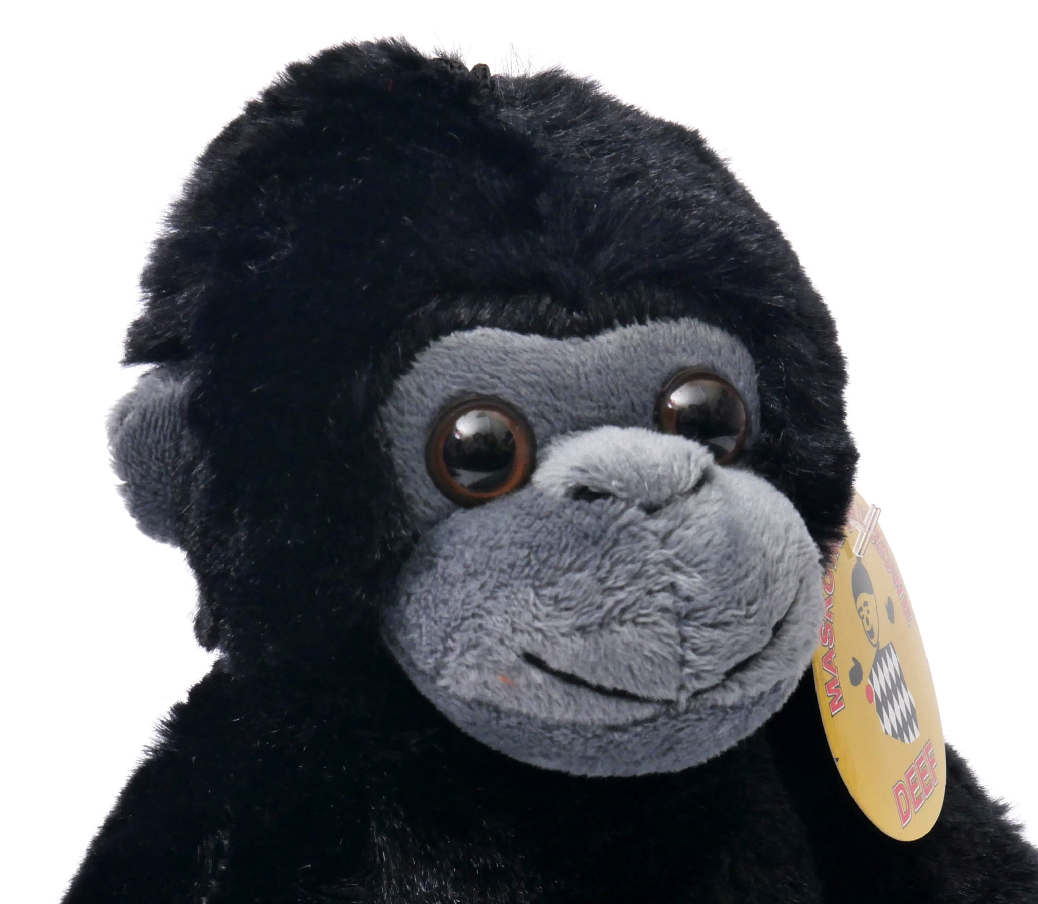 Śliczny duży szympans pluszowy. Maskotka wyjątkowo wiernie odzwierciedla zwierzę występujące w naturze. Taki pluszak może stanowić wyjątkowy podarek dla dziecka kochającego małpki, a zwłaszcza ten gatunek.