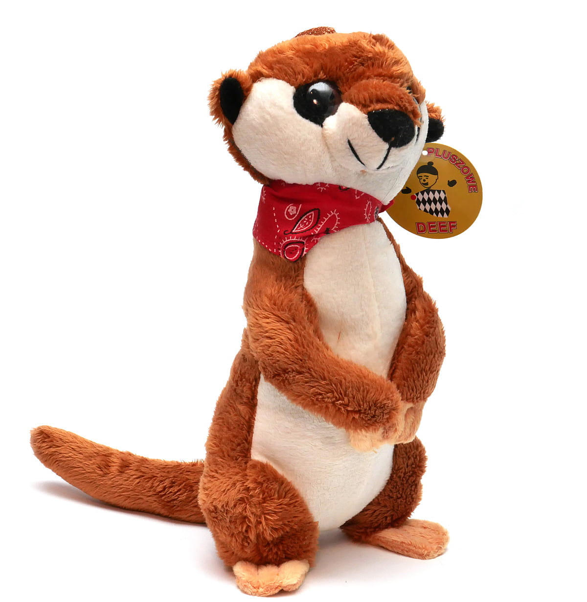 maskotka - pluszowa surykatka z czerwoną apaszką