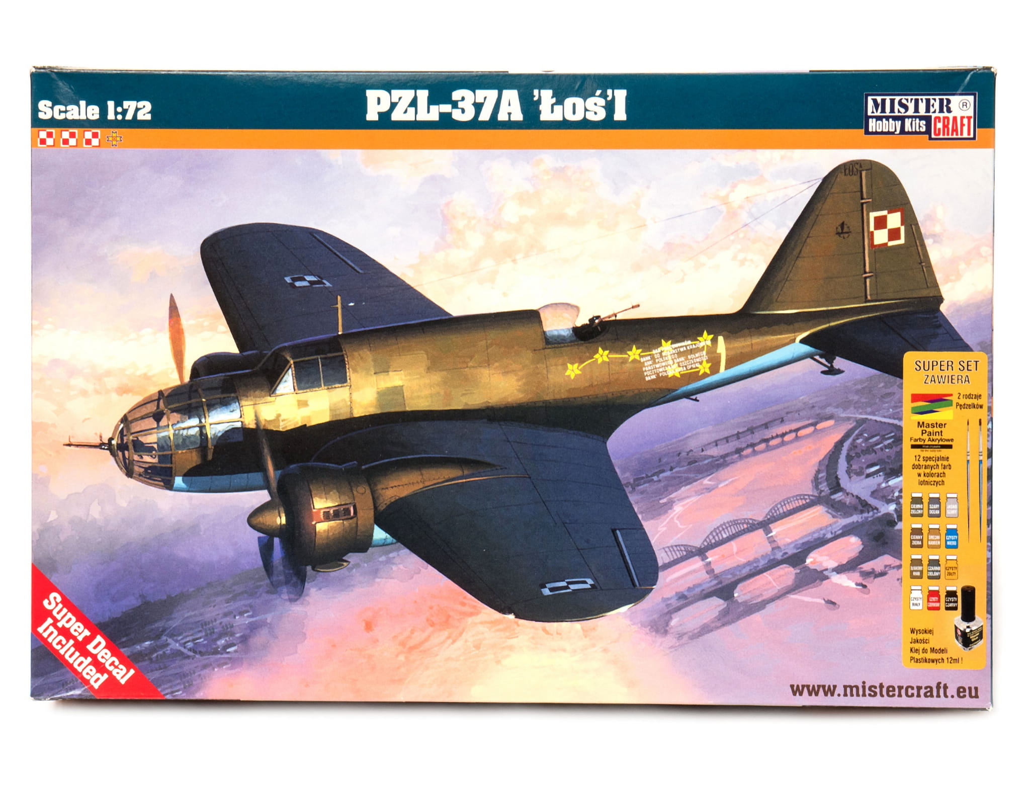 model do sklejania samolot PZL-37A Łoś I 1:72 + zestaw z farbami
