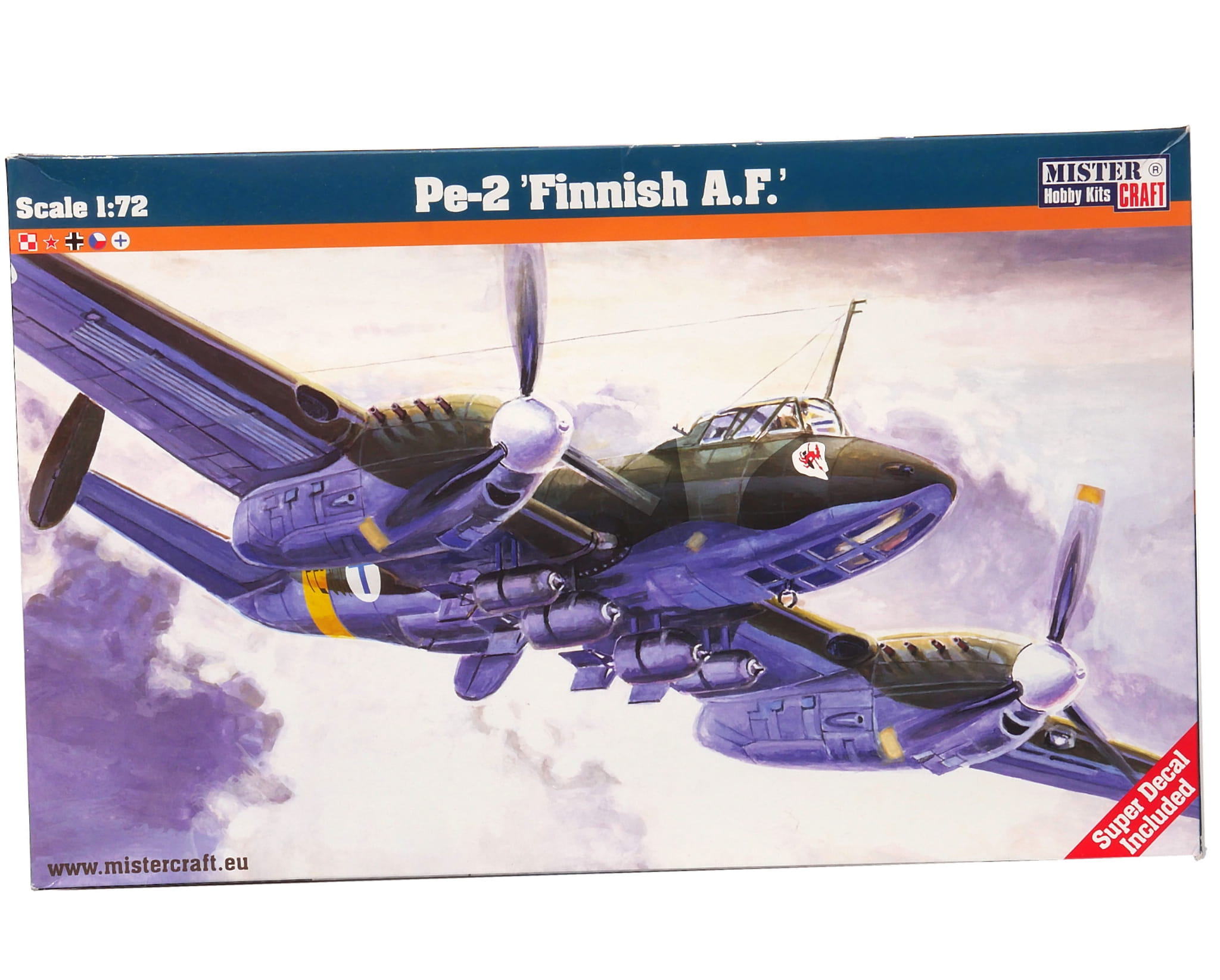 Plastikowy model do sklejania znanej marki Mister Craft. Marka dysponuje dość szerokim asortymentem modeli samolotów wojskowych i cywilnych w różnych skalach. Do zestawu nie ma dołączonego kleju. Klej modelarski należy dokupić osobno. W zestawie znajdują się natomiast kalkomanie z grafikami do naniesienia na sklejany model.