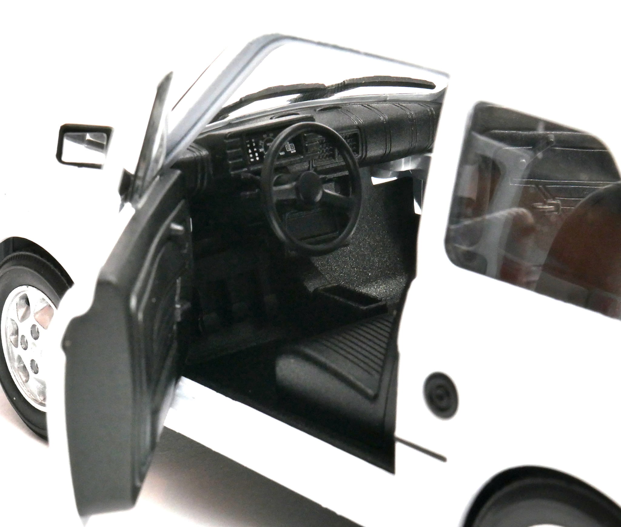 Autko ma otwierane drzwi i komora silnika, skrętne koła i kierownica.