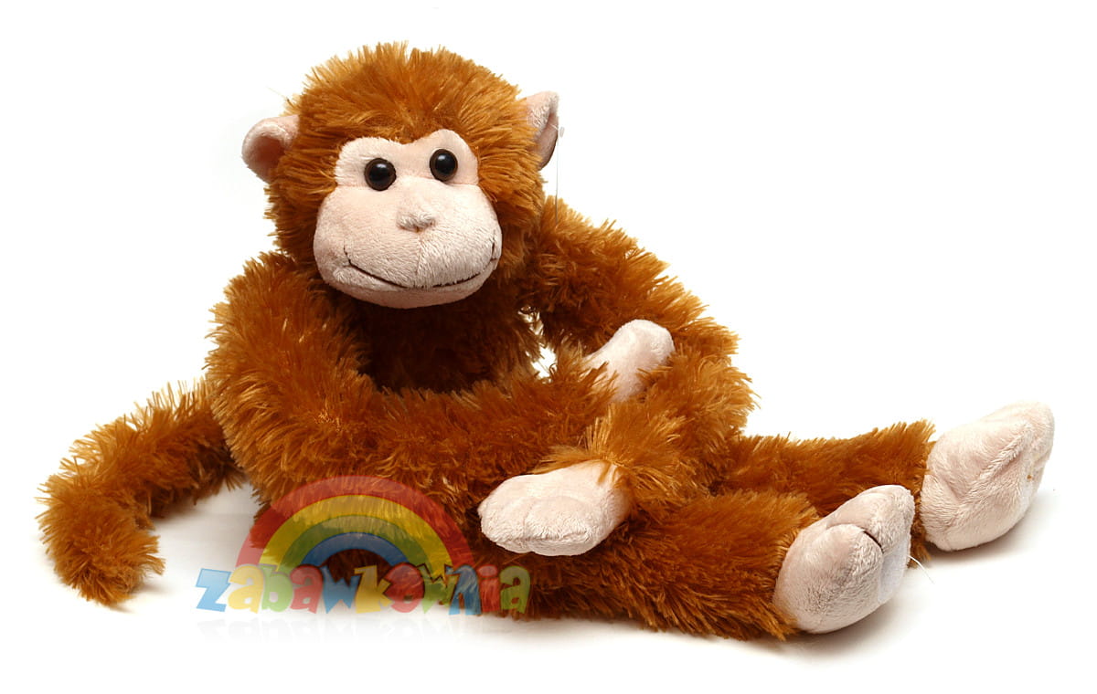 Małpka pluszowa miękka i przyjemna w dotyku. Posiada roześmiany pyszczek i urocze spojrzenie. Dzieci ją pokochają. Dodatkowo kończyny zwierzaka dają się przesuwać wydłużając i skracając na przemian nogi i ręce, dając dodatkowe możliwości zabawy