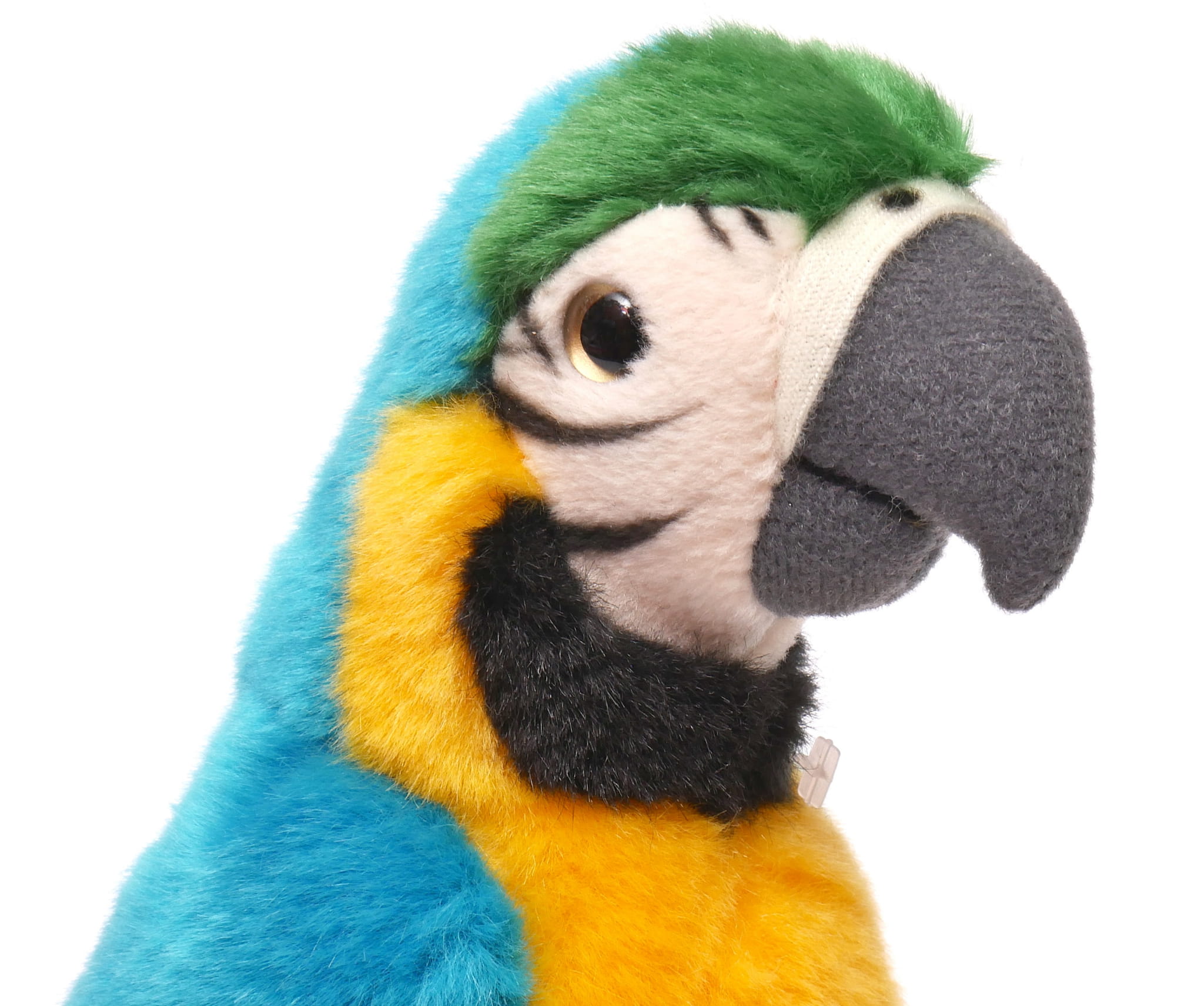 Pluszowy Papuga wygląda jak żywa. Ptak spodoba się każdemu małemu ornitologowi.